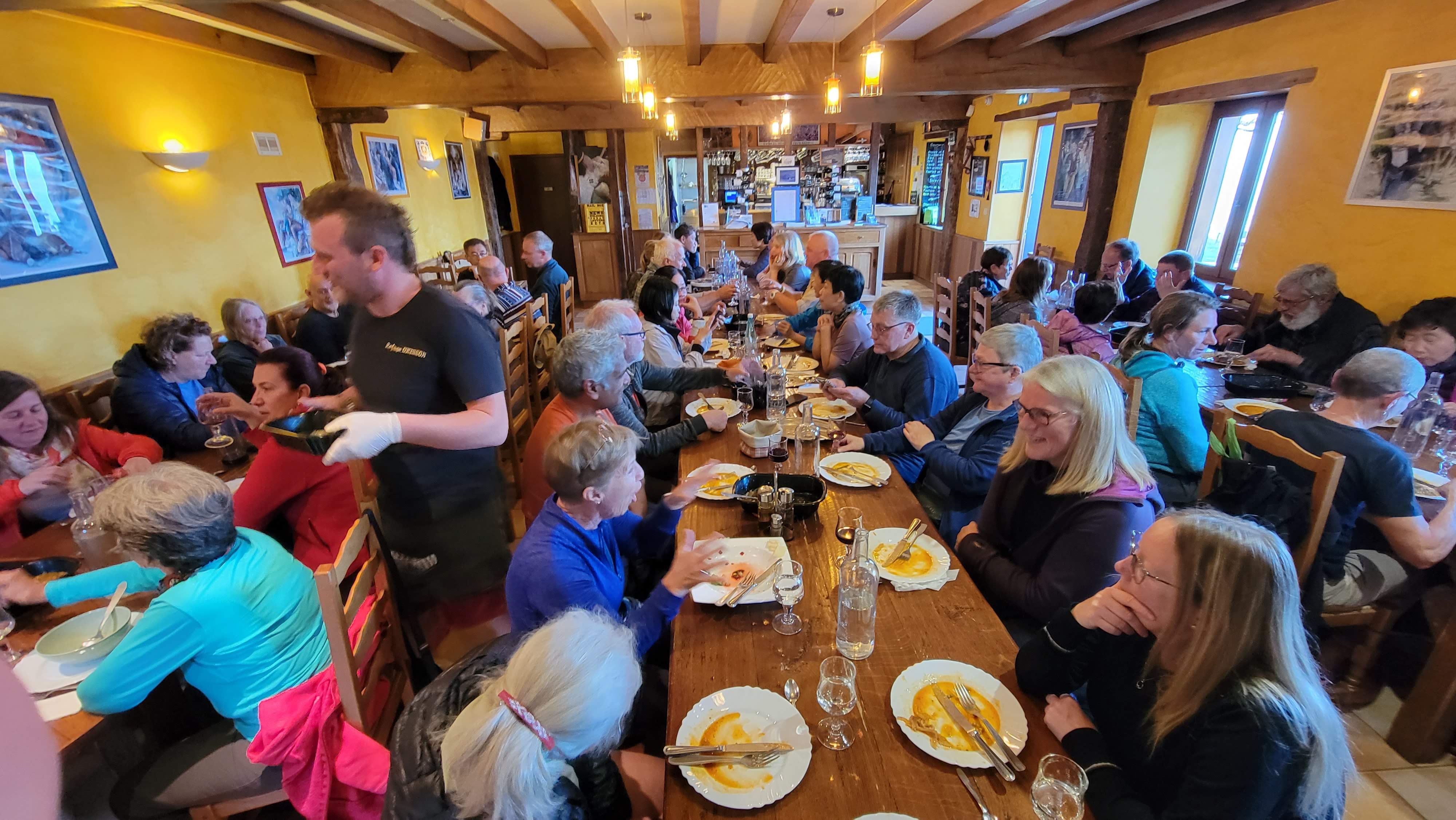 Grand restaurant de repos sur la route du pèlerinage des Pyrénées Beaucoup de nourriture et beaucoup de boissons Superbe vue, personnel sympathique et intéressant