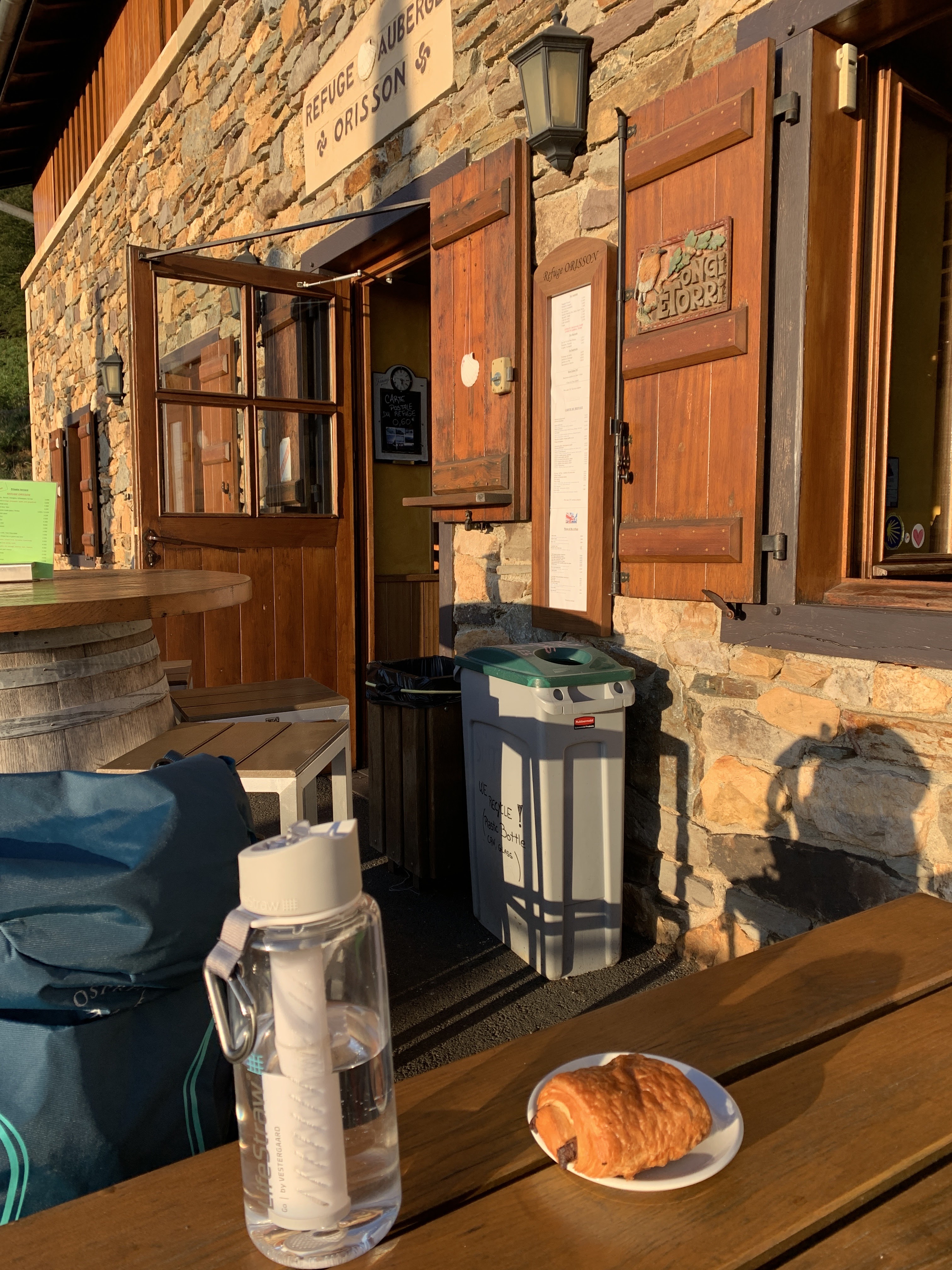 Randonnée depuis St Jean Pied de Port et retour pour la journée, c'était une oasis très appréciée ! Sandwichs, eau, vin, soupe ! Et la journée était froide avec une bruine constante.
