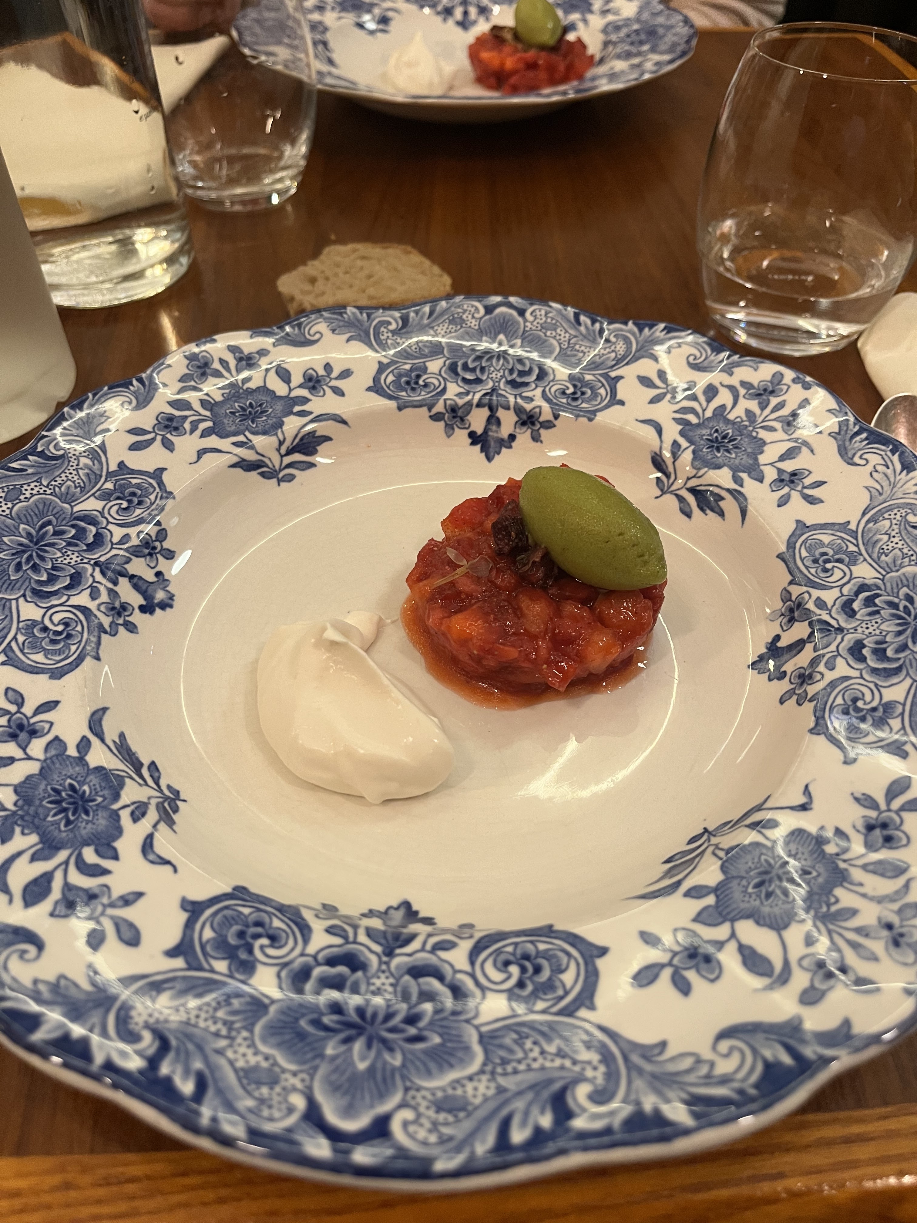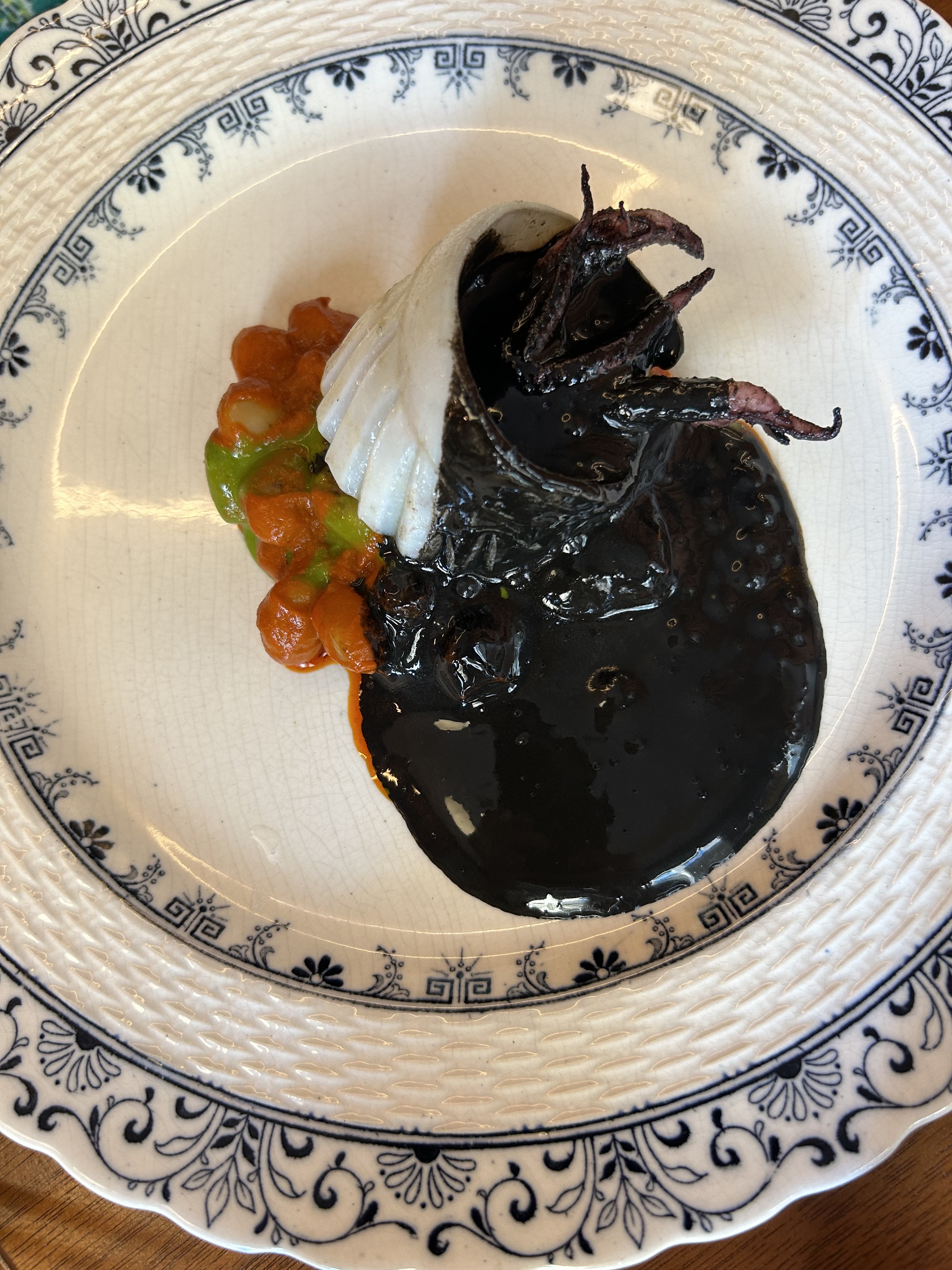 Personnel sympa, accueillant, souriant. Le decor est beau, les tables grandes, le couvert de bonne qualité. En ce qui concerne les plats et mises en bouche, c’était tres bon en général. Premiere mise en bouche a base de farine de pois chiche et ail était tres bonne ainsi que celle à base de fenouil. J’ai préféré l’entrée à base de courgette a celle de carpaccio qui reste quand meme bonne. Pour les plats de poulpe, ils étaient tous les deux bons. Pour les plats poulette, le premier plat n’était pas du tout bon à mon gout et surtout pas appétissant (une sorte d’effiloché de poulette avec sa peau). Le deuxième plat de poulette a un petit peu rectifié l’affaire, mais en gros les plats poulette étaient le seul bémol. Et pour finir avec les desserts, la mise en bouche a base de framboise et gingembre était bonne et le dessert principal était une sublime découverte: un dessert à base d’aubergines, sésame, et fromage de chèvre, waouw! Enfin le prix: tres justifié pour le nombre et la qualité des plats.
