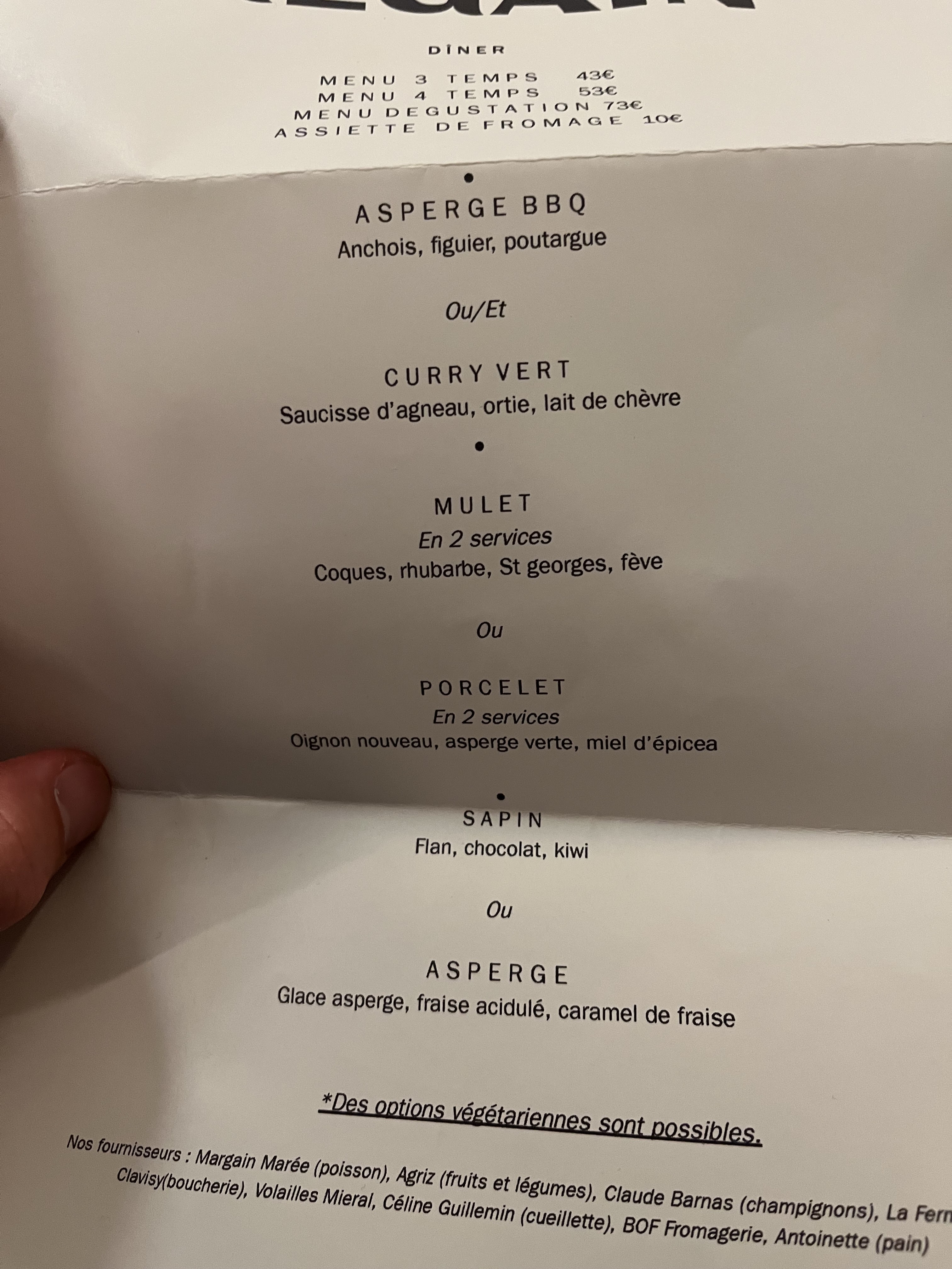 Une carte courte mais des produits frais et un art maîtrisé dans un enchaînement de plats par deux d’où le nom de regain et une suite de délicieux plats avec un service parfait je recommande vivement