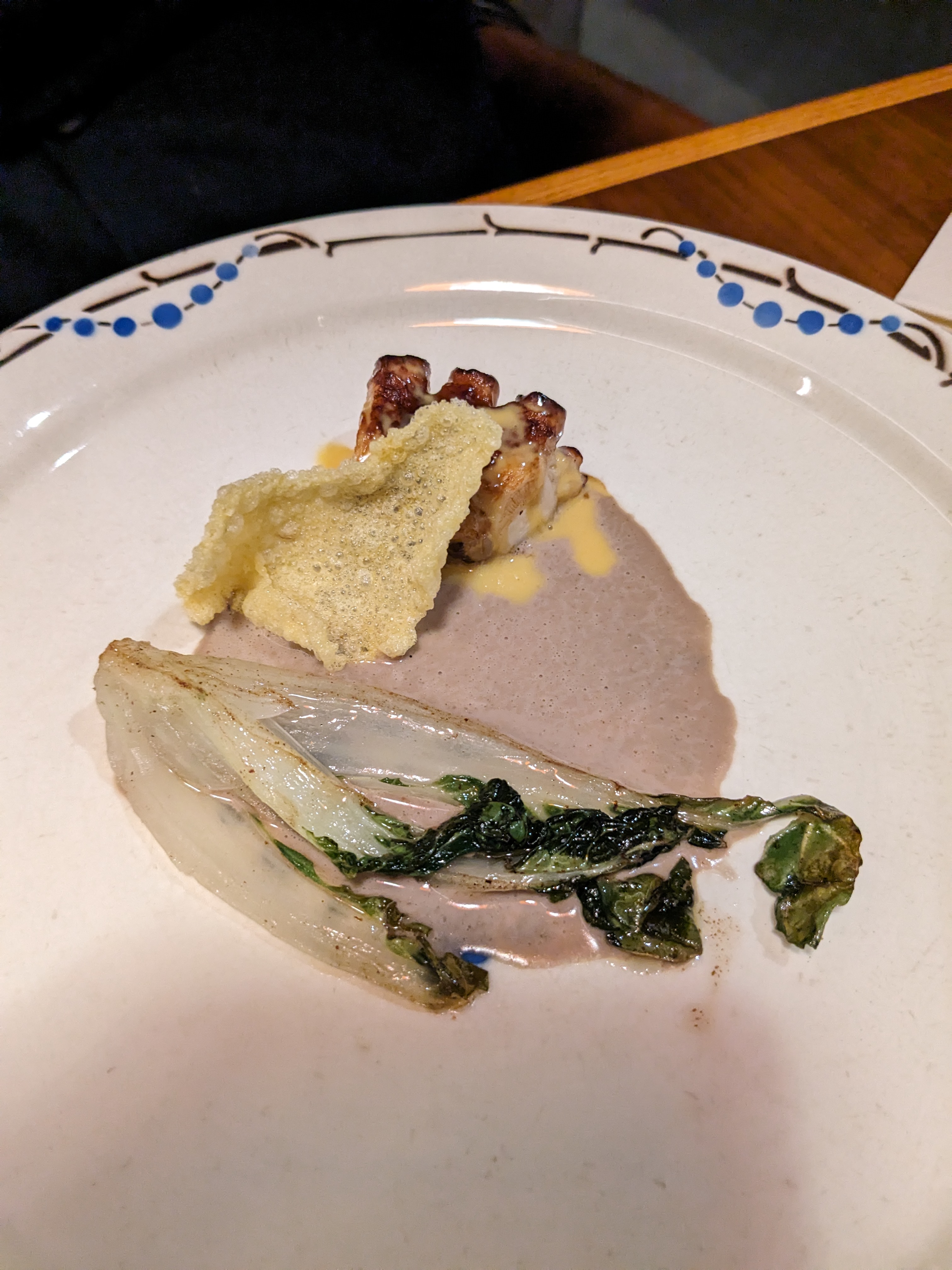Cela est une belle découverte et les mets sont réussis. Je pense que l’on peut encore aller plus loin pour raconter et vivre cette belle expérience culinaire. Pour nous faire totalement plonger dans votre univers : - La vaisselle mériterait d’être plus adaptée (taille et forme) pour sublimer les réalisations - La ligne directrice pourrait être plus marquée - La présence d’aromatiques et/ou graines apporteraient des petites touches délicates et de peps - Dans quelques mets il m’a manqué un peu de mâche (personnel) - La décoration du restaurant pourrait être plus personnalisée (en rapport avec la Méditerranée?). Bravo pour le paleron en 2 services ; le 2eme était sublime. L’association avec le jaune d’œuf waouh