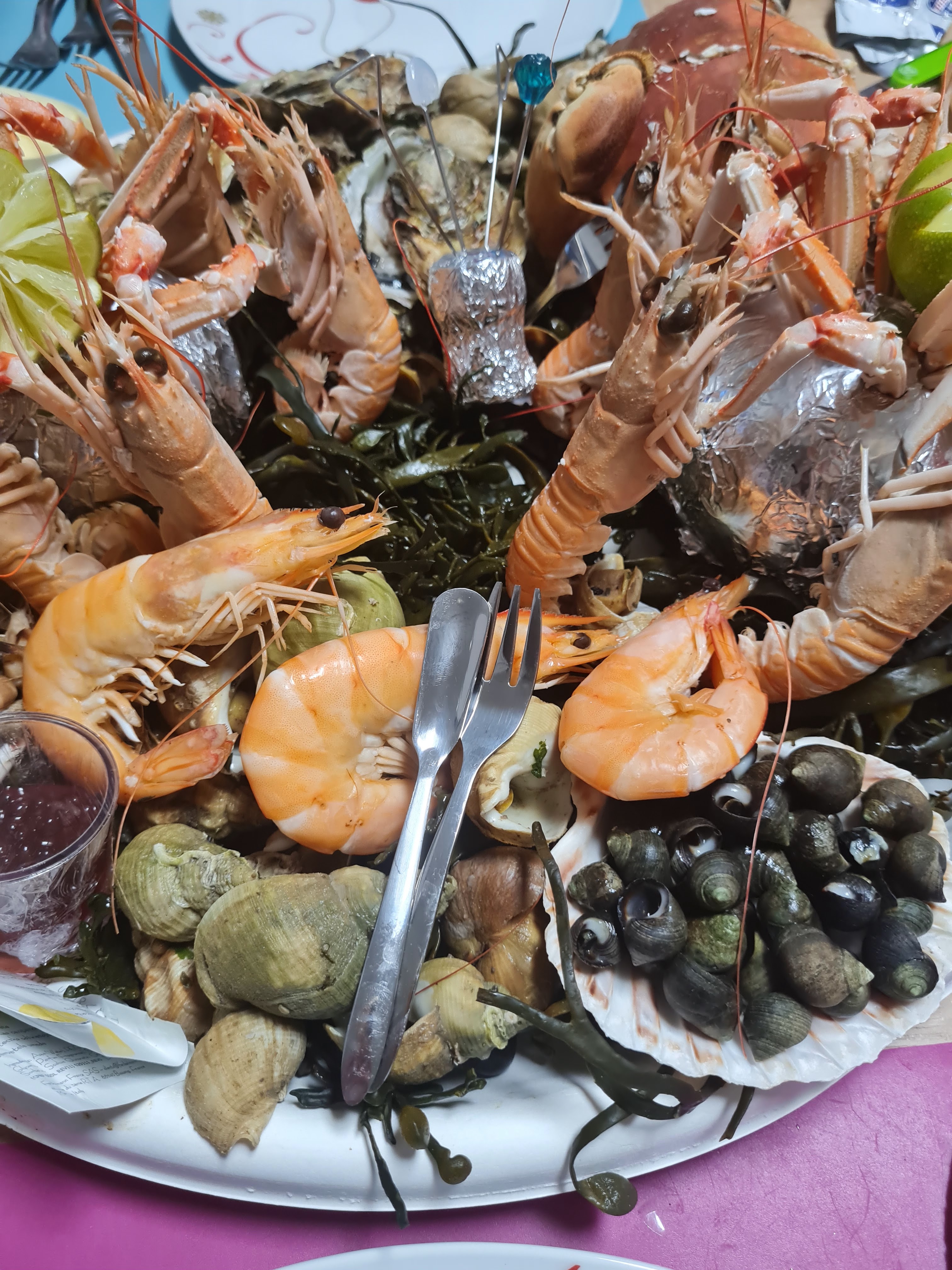 Super plateaux de fruits mer, vraiment très généreux et diversifiés. Il y a tout ce qu’il faut mayo, aïoli, billes de vinaigre échalotes, citron mais également les petites cuillères, les pics etc…produits ultra frais et les huîtres sont déjà ouvertes. On s’est tous regalé, merci beaucoup pour cette générosité.