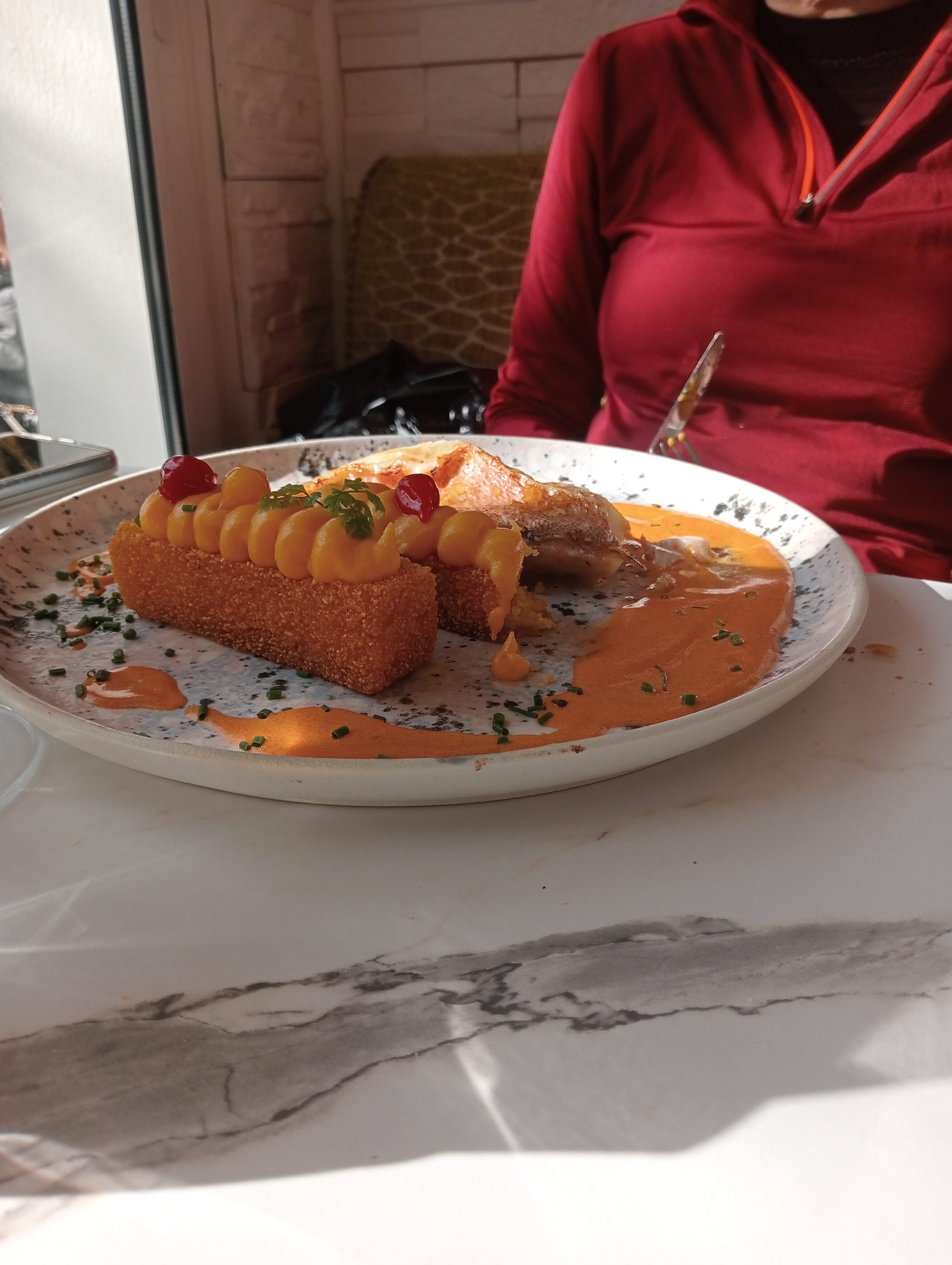 Crêpe salée et croquettes madame demandé sans viande au top. Prix correct. Très bon. Agréable à la terrasse.