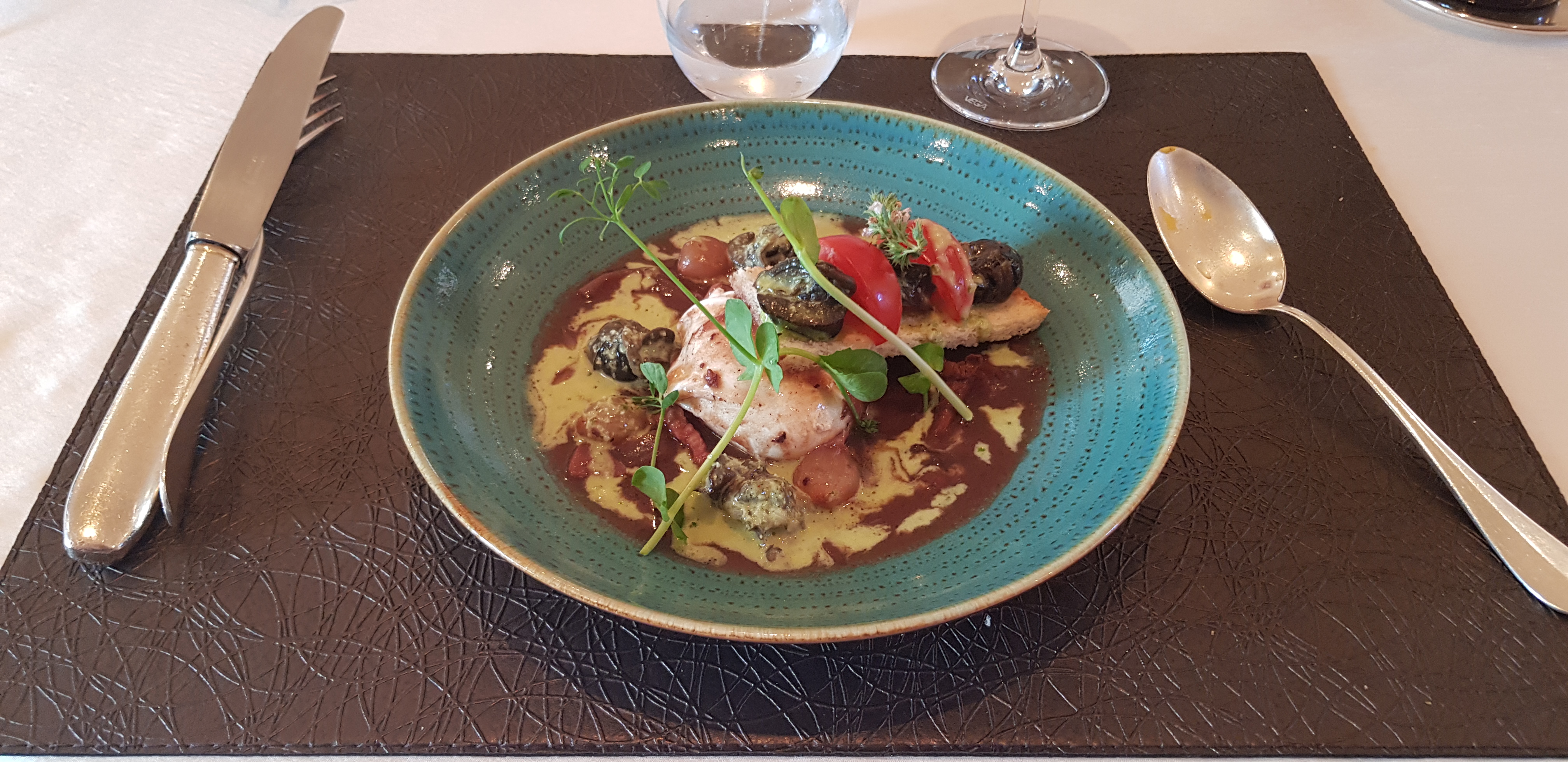 Cuisine raffinée dans un joli cadre. Repas copieux