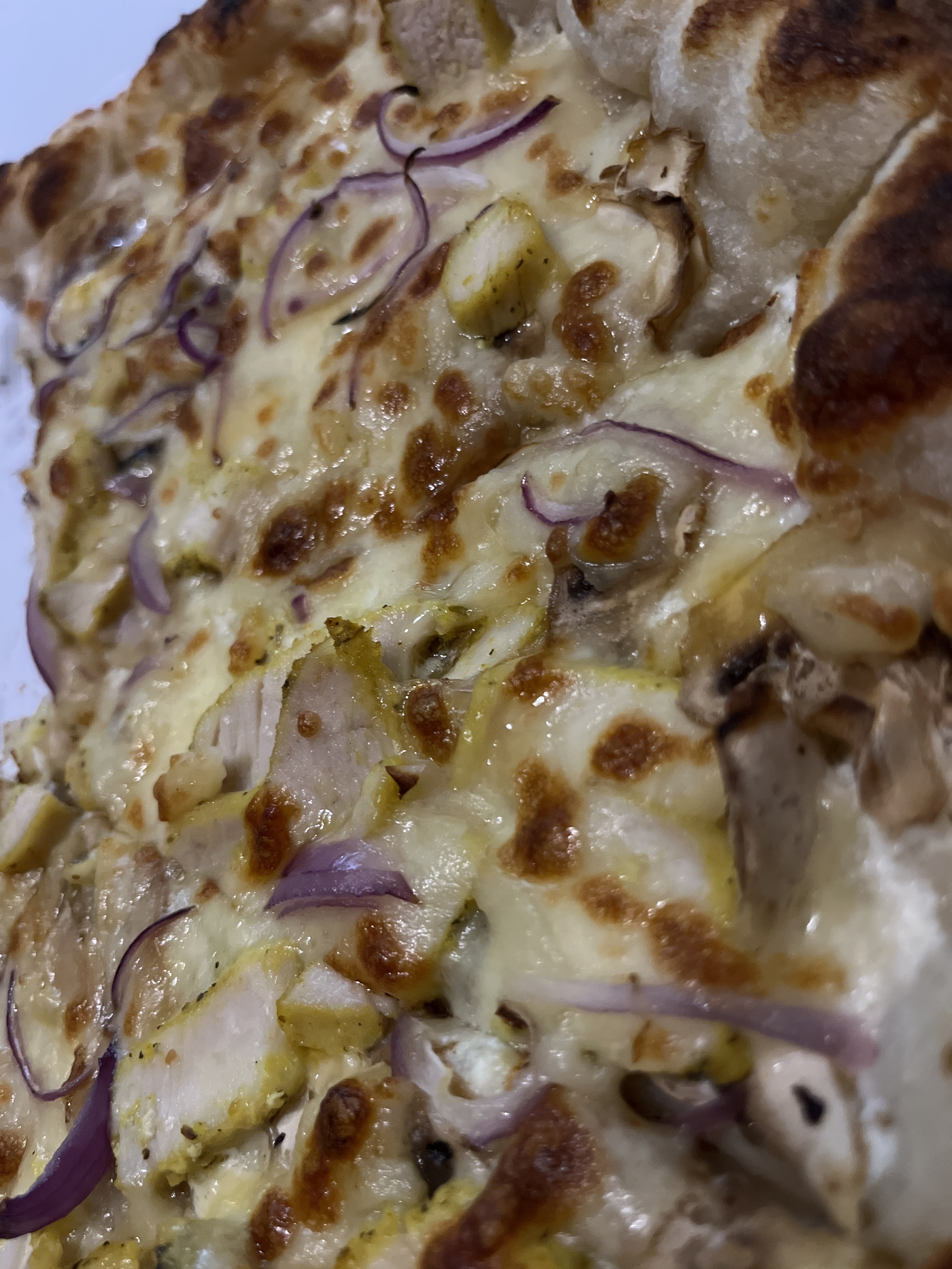 Pizza en livraison vraiment parfaite en goût et texture. L'équilibre parfait entre la garniture et pâte, goût incomparable et ingrédients de qualités (champignons frais, poulet mariné et tendre...). Je recommande.