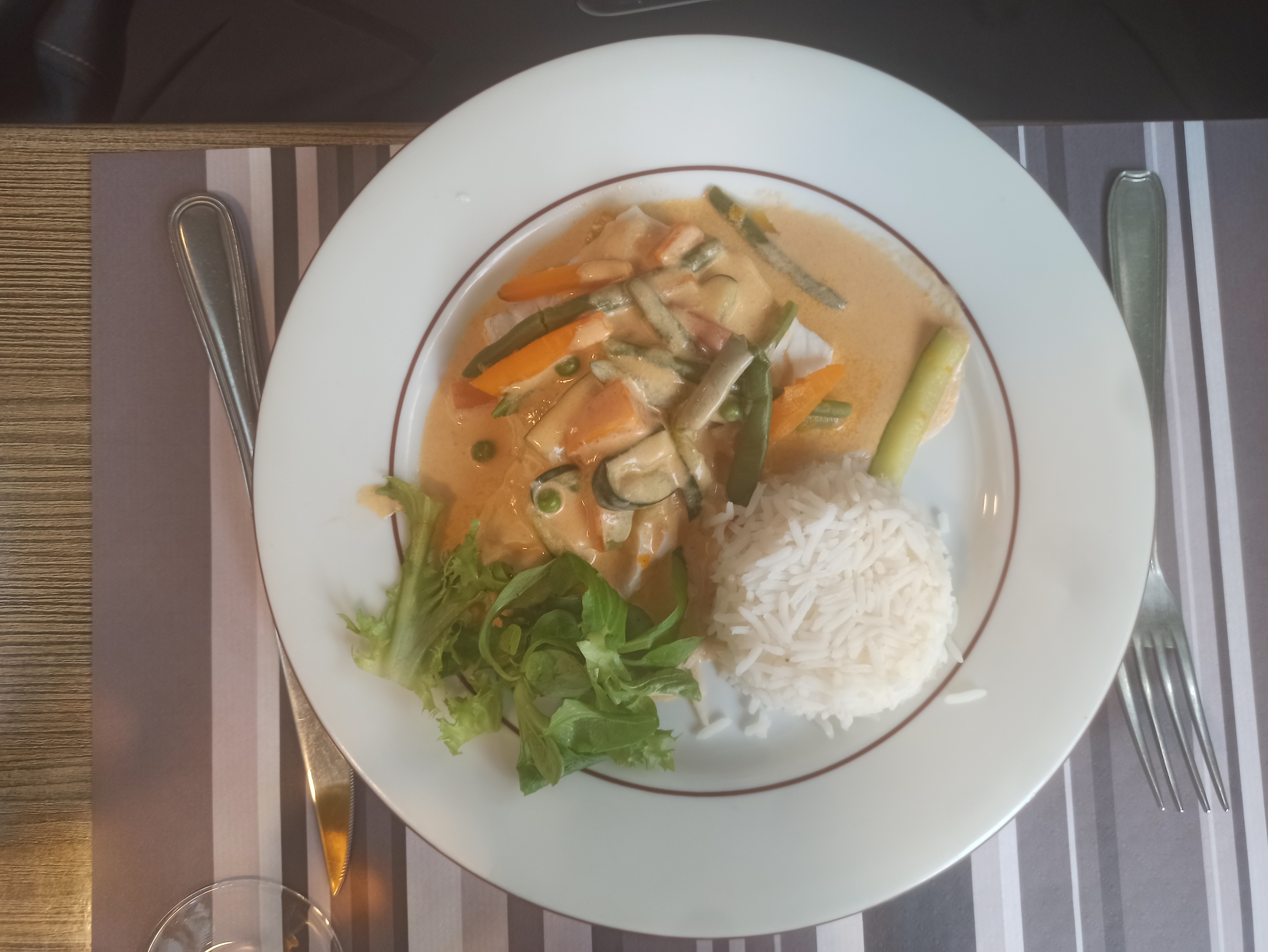 Nous avons pris du poisson, crème caramel, mi tiède, mi froide seule la note était chaude.