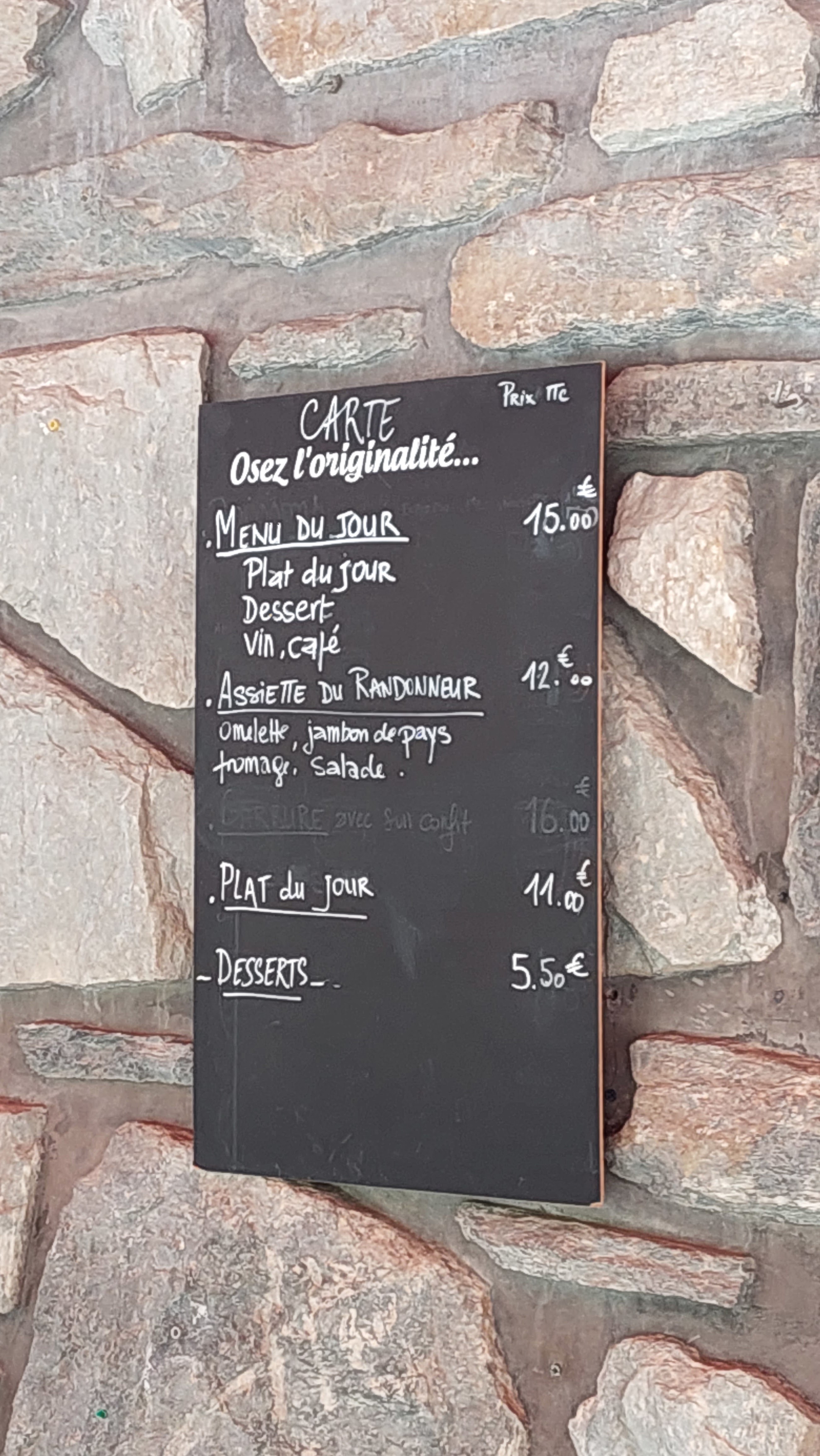 Nous avons pris mes parents et moi même assiettes de randonneur très bon plus la salade tres bonne. Félicitations à la responsable qui arrive à gérer la cuisine le service et la caisse et les clients