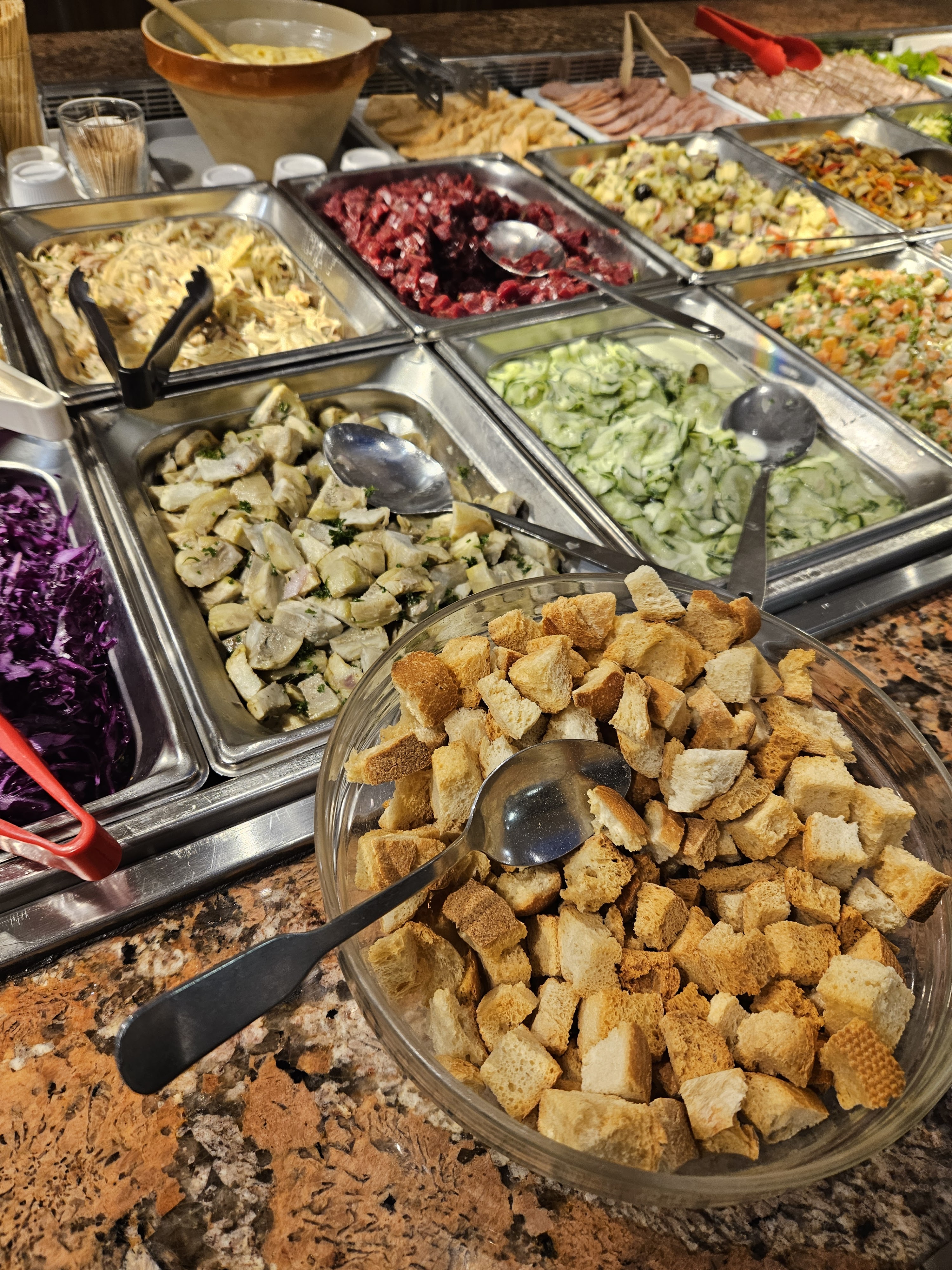 Endroit sympathique personnel souriant avec un bon contact Buffet d'entrées bien approvisionné et beaucoup de choix Nous avons passé un bon moment