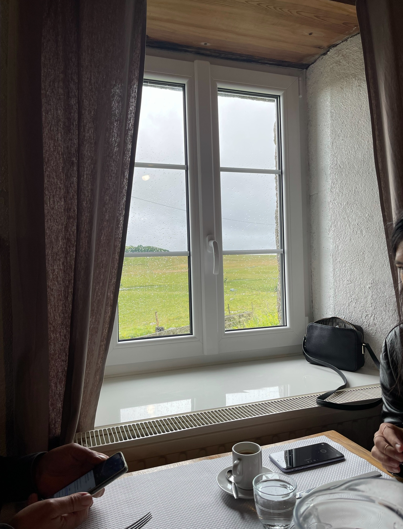 Très bon accueil, cuisine du terroir excellente et tarif plus qu'abordable. Une superbe vue sur les paysages de l'Aubrac malgré les averses.