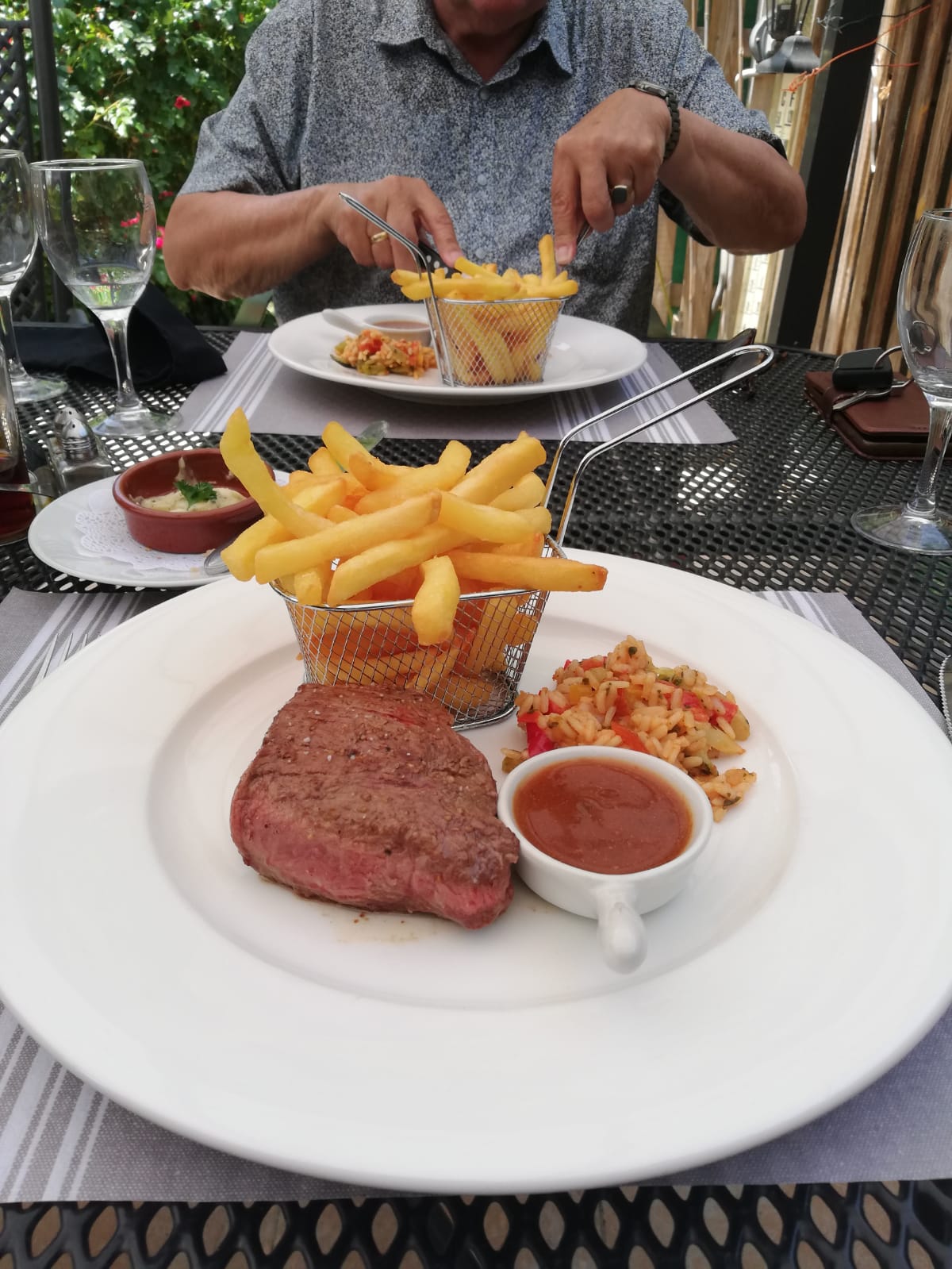 Accueil chaleureux , terrasse ombragée Choix des plats variés. Belle présentation Plats goûteux Je recommande ce restaurant , cadre sympa , tout près du château !!