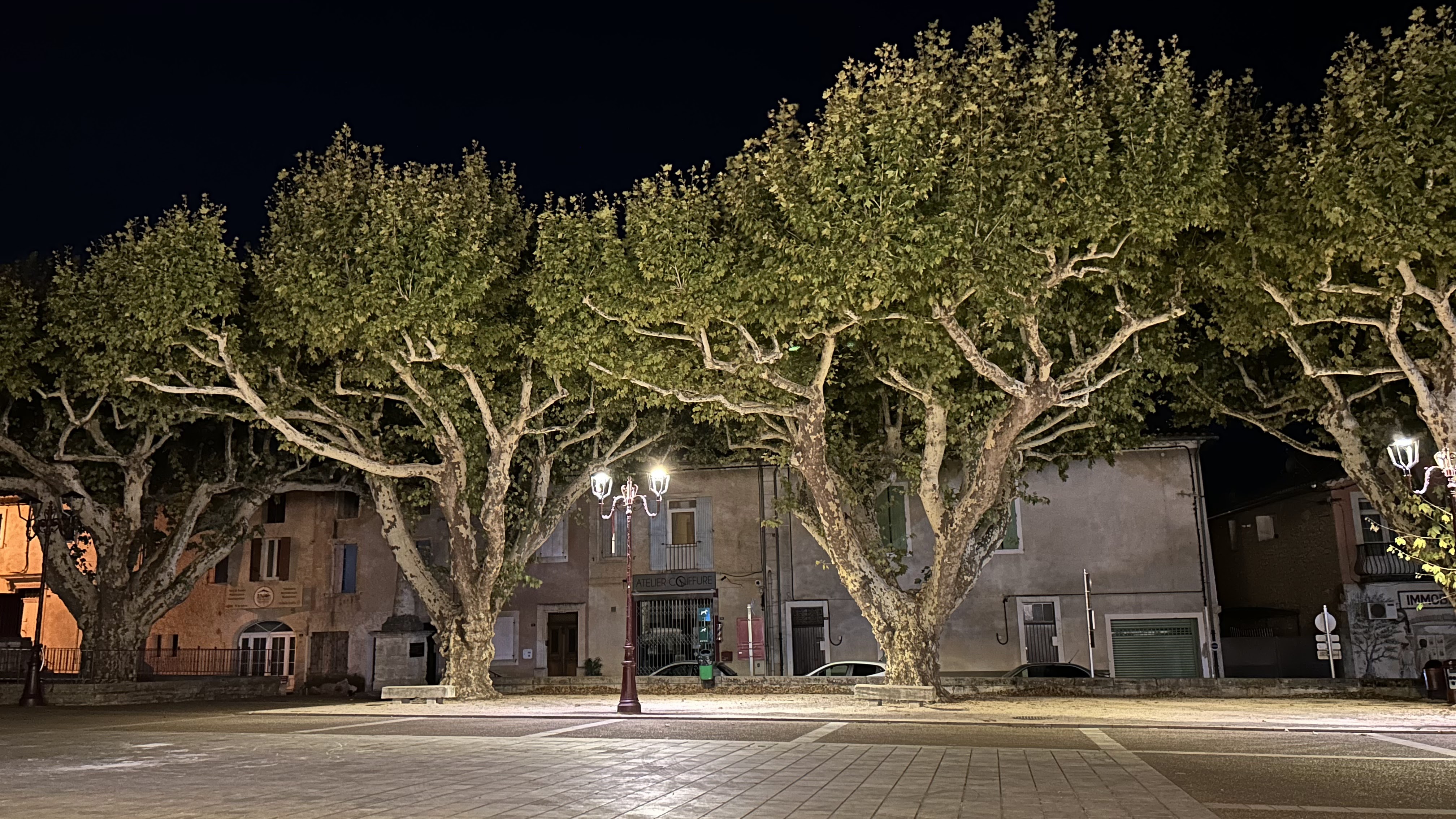 Musique française à fond, une équipe chantante, bar au cœur du village, ombragé par les platanes, très bon moment