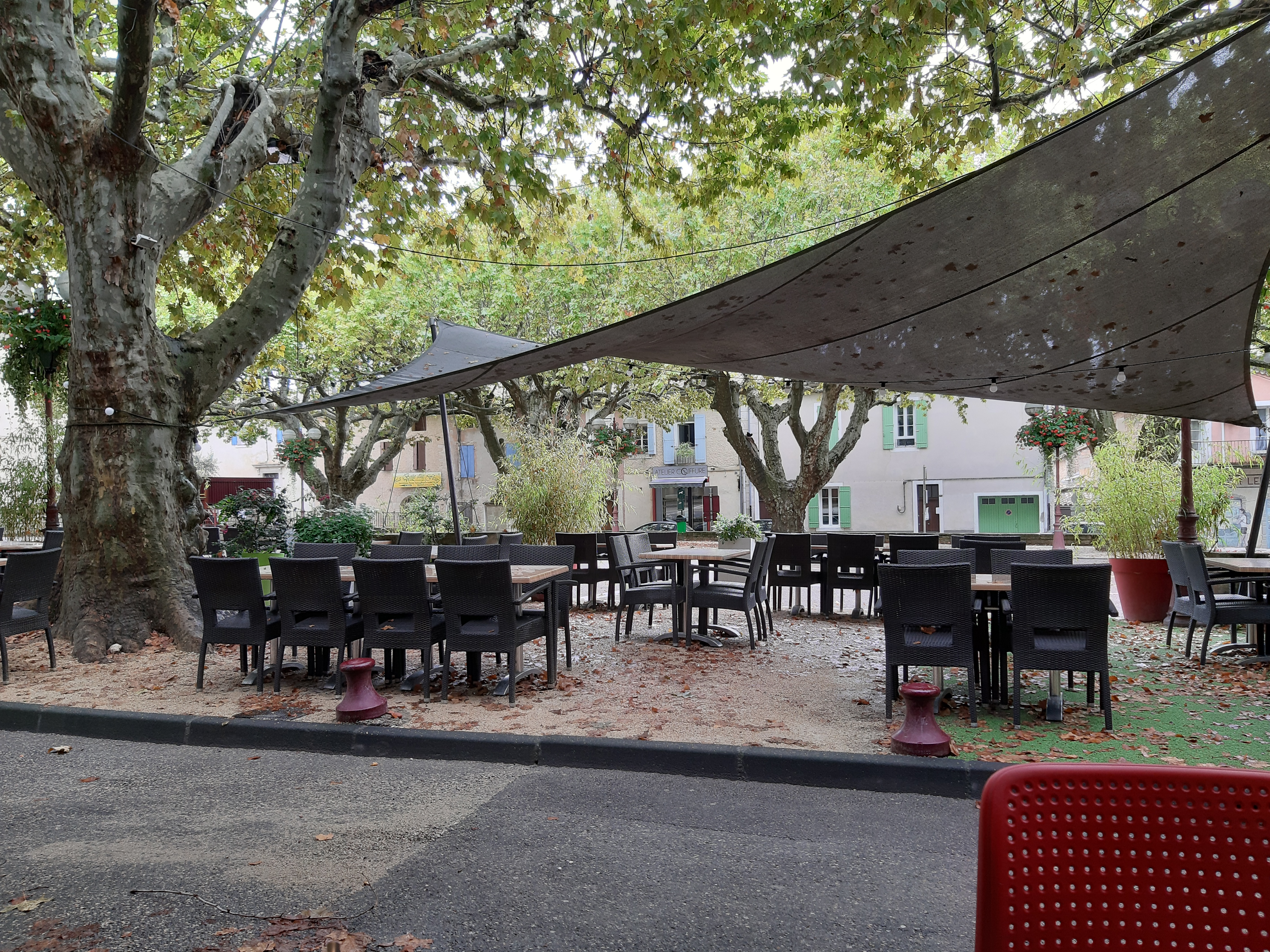 Très bon endroit pour manger, plus mitigé pour boire un coup car vous êtes en bord de route et c'est très passant, par contre la tranquillité en retrait de la route pour le repas sur la petite place à l'ombre des platanes. L'entrecôte est excellente je vous la recommande.
