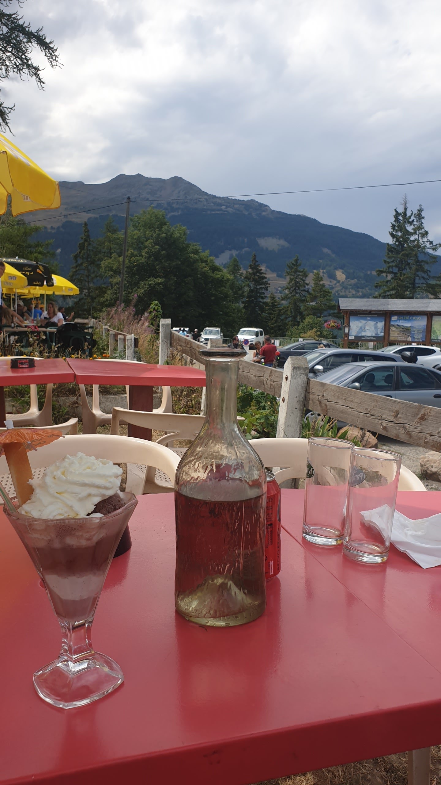 Pas beaucoup de places mais tout ce qu'il faut pour se désaltérer lors de son passage sur le col!
