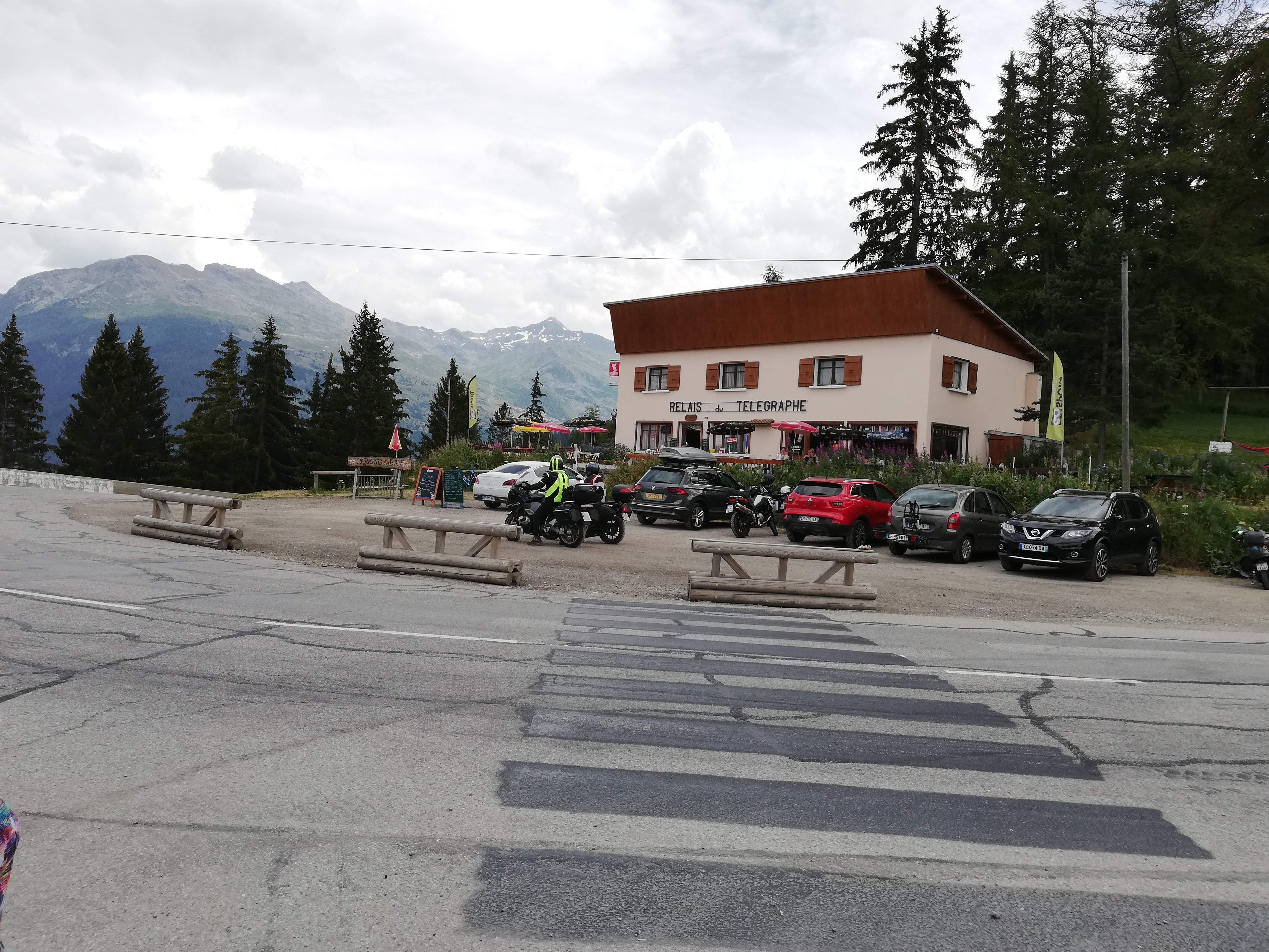 Superbe vue sur le col du télégraphe avec l'arrivée permanente de cyclistes, on passe un bon moment sur la terrasse