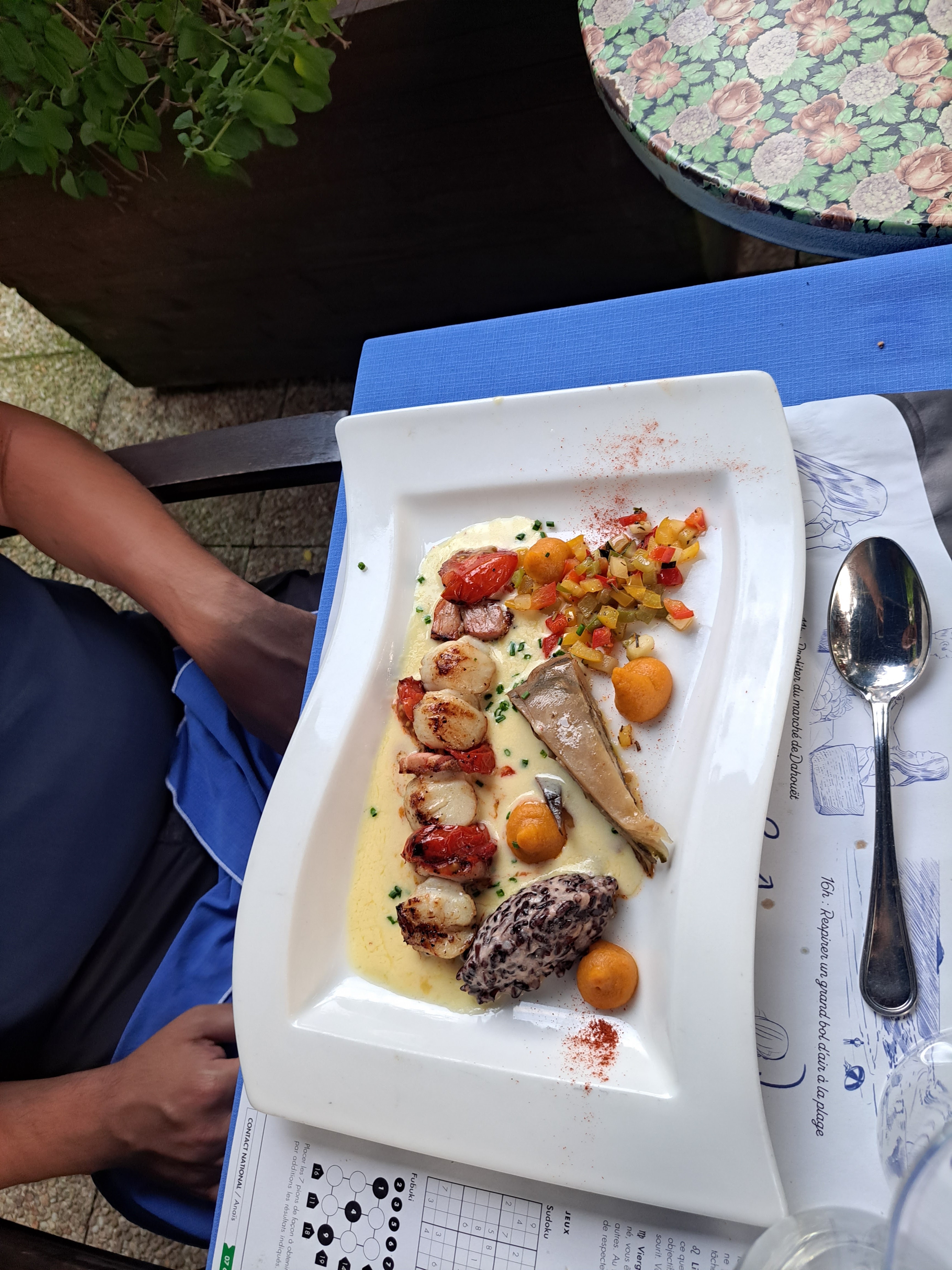 Cadre atypique où il fait bon vivre le temps du repas. Les différents plats étaient excellents, de l'entrée au dessert 👌 Un léger petit bémol quant au service qui était peu chaleureux.