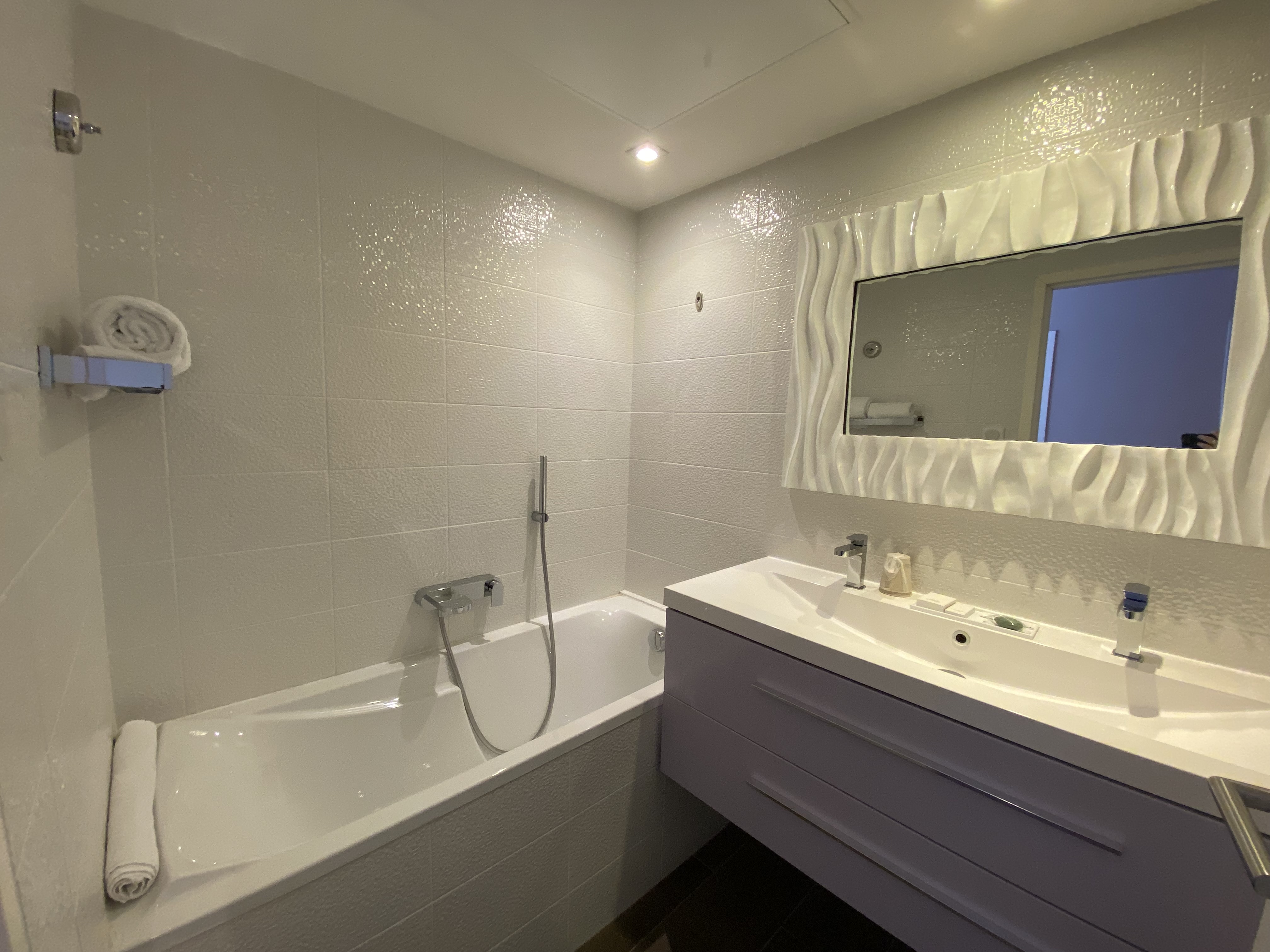Mini bar HS dans la chambre, le chromecast de la TV ne fonctionne pas, le sauna homme HS, piscine très bruyante le samedi soir et terrasse de la chambre sale. À 10h18 il ne restait presque plus rien au petit déjeuner à part des huîtres et du champagne. Au niveau du restaurant merci au chef et au maître d'hôtel de s'adapter à leur clientèle au niveau du menu et des allergènes. Néanmoins déçu de la carte, on a l'impression d'avoir parmi plus de choix de viande que de poisson (hors plat avec réservation). Mis à part cela la Chambre etait top avec douche et baignoire.