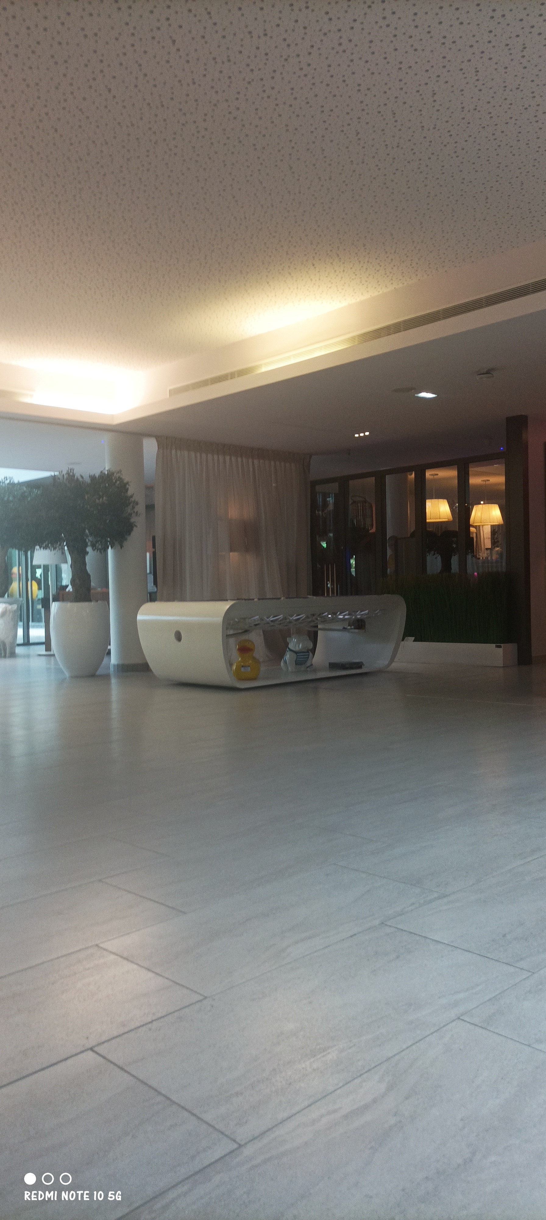 Très beau lieu et les espaces communs sont élégants, le buffet du petit déjeuné est magnifique. Nous avons réservé une chambre vue mer (prestige océan), la vue était charmante mais la chambre nous a semblé un peu petit et il est dommage qu'il n'y ait pas de petits fauteuils au lieu de chaises en bois (comme sur les photos), impossible de se connecter au wifi ! La salle de fitness est très décevante : petite salle avec 4 appareils collés au mur ! Et au Spa marin, dés que l'on sort de l'eau il fait froid, des serviettes pourraient être mises à disposition car nous avons du garder la même pendant tout notre séjour (de 3 jours) et les faire sécher dans la chambre ! Ayant une cure de 3 jours, nous aurions appréciés avoir la même personne pendant nos soins.