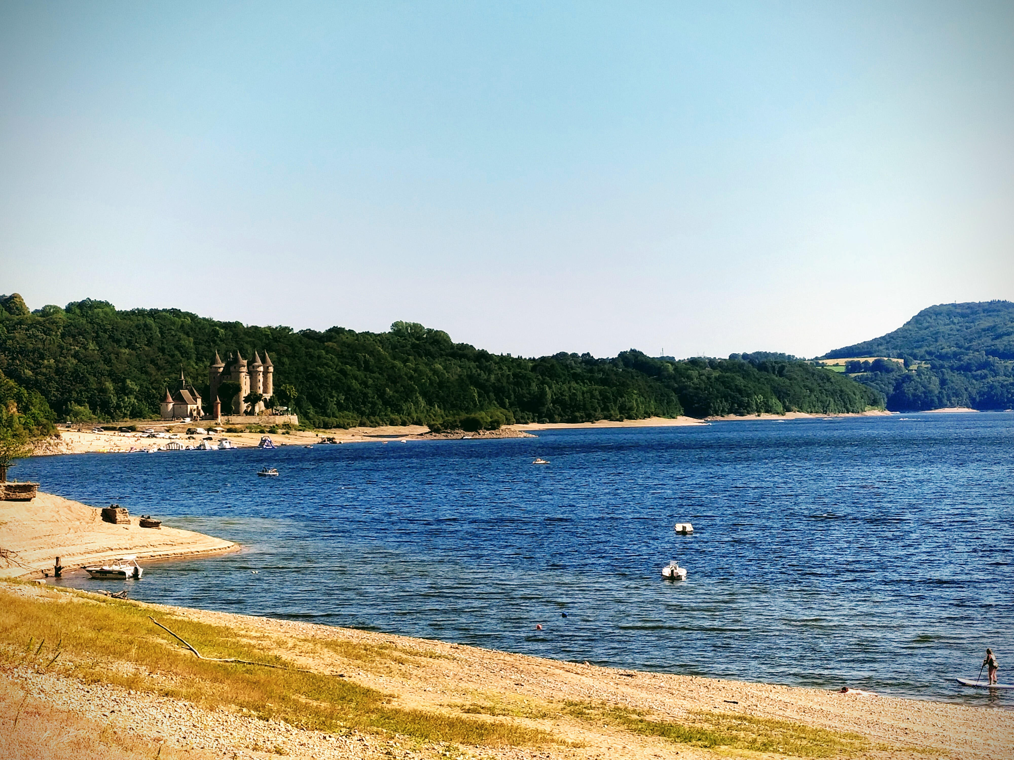 Par une belle fin d’après-midi de juin 2022, après un séjour sur la plage et une baignade à Val, nous décidons, vers 17h30/18h00, d’aller boire une petite bière au bar Valcastel: par ailleurs très beau point de vue sur le lac de Bort/Lanobre et le château de Val. On nous répond que ce n’est pas possible car les tables sont dressées pour le repas du soir et qu’à 18h30 les touristes viennent manger comme des balles (ou des bêtes je n’ai pas bien compris). On se croirait à St Tropez et peut être qu’on dîne tôt en Auvergne, mais en insistant, on nous trouve une petite table bien placée et équipée d’un parasol. Le ciel est bleu, pas de vent , 30 degrés : nous demandons s’il est possible d’ouvrir le parasol: on nous répond qu’il n’est pas prévu pour le vent et les orages. Des orages sont annoncés en effet mais n’éclateront que vers 23h/minuit !!!! Nous partons. Je déconseille cet endroit et ses gens peu sympathiques et conseille le food truck sur le parking de la capitainerie ou le snack de la plage de la Siauve, qui pour le coup, ont des personnels sympathiques et bosseurs ! Déjà l’an dernier nous étions partis après une demi heure d’attente pour une prise de commande. Je connais , je suis du coin!!!! Bonnes vacances