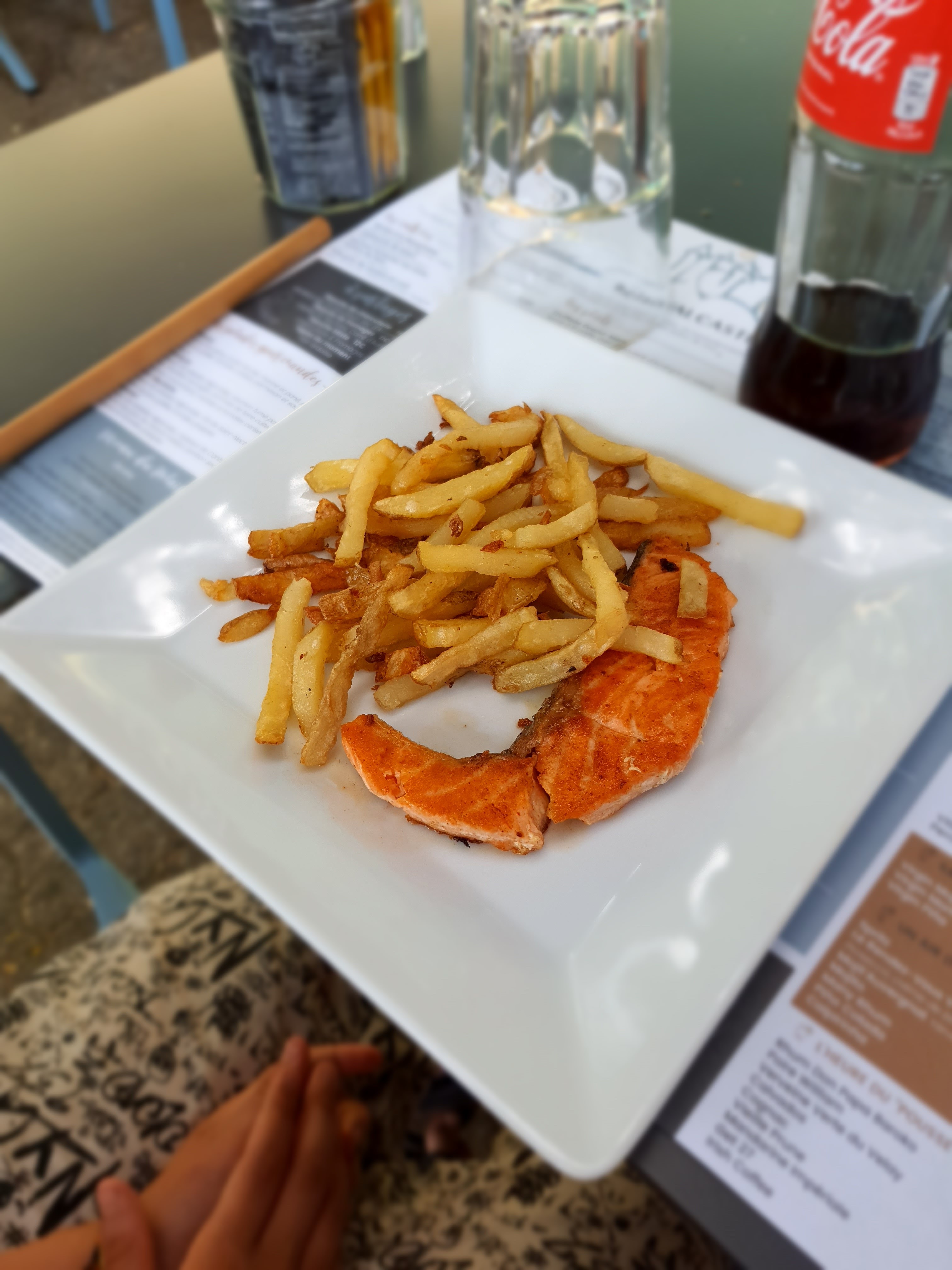 Vue sur le château pendant le repas J'ai enfin pu manger local pendant mes vacances et une chose de bien c'est que le menu enfant change des resto ou c'est toujours steak haché ou nuggets frites, la ma fille a pu manger local aussi