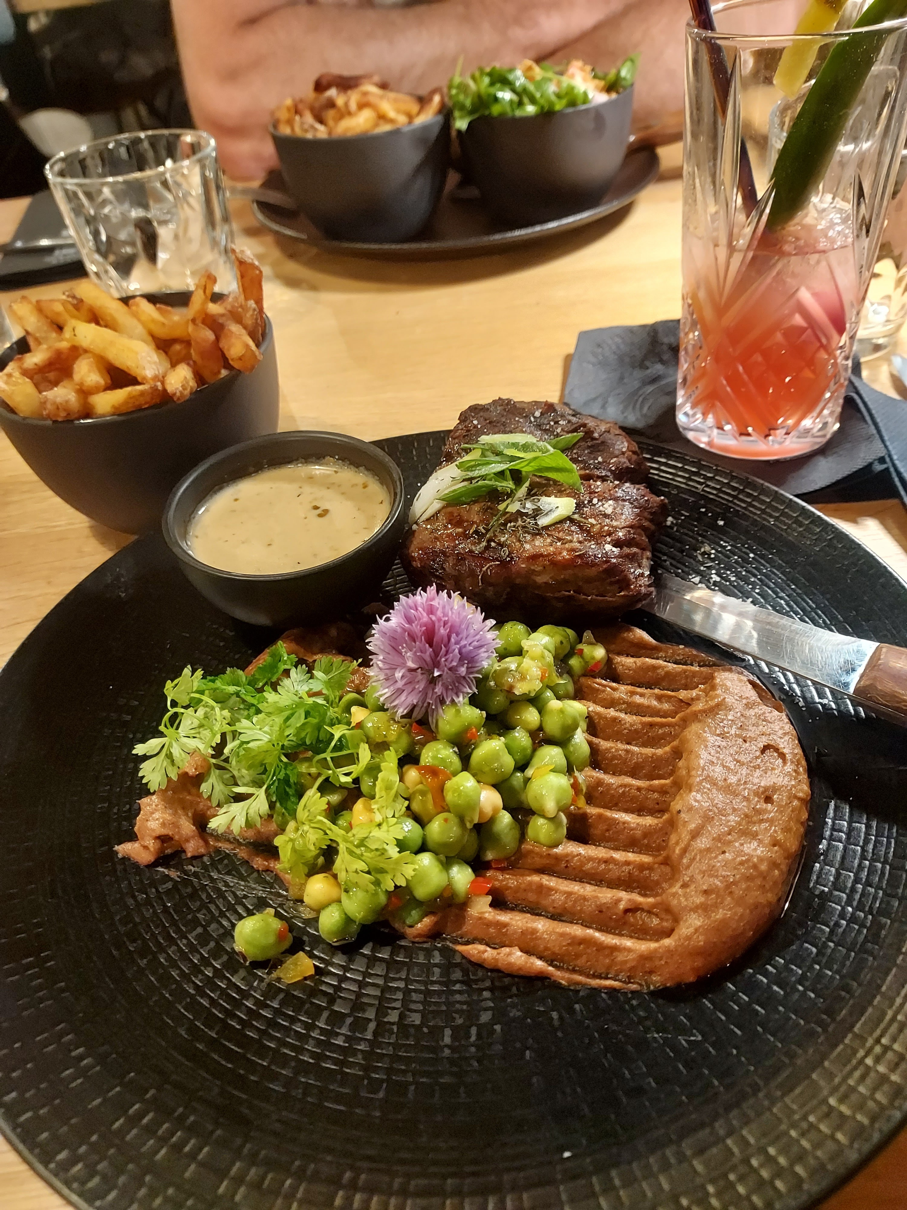 Comme beaucoup avant d aller dans un lieu on regarde les avis des uns et des autres . Une bonne surprise, comme beaucoup d avis bon accueil lieu convivial un lieu tres propre , mais pas que , un personnel au top souriant sympathique, et très pro . Une très belle carte avec un très bon choix , côté de bœuf 🐂 une merveille. Tendre, avec du goût, très bien préparé. Et à notre grande surprise un tarif très correcte . On reviendra très vite .