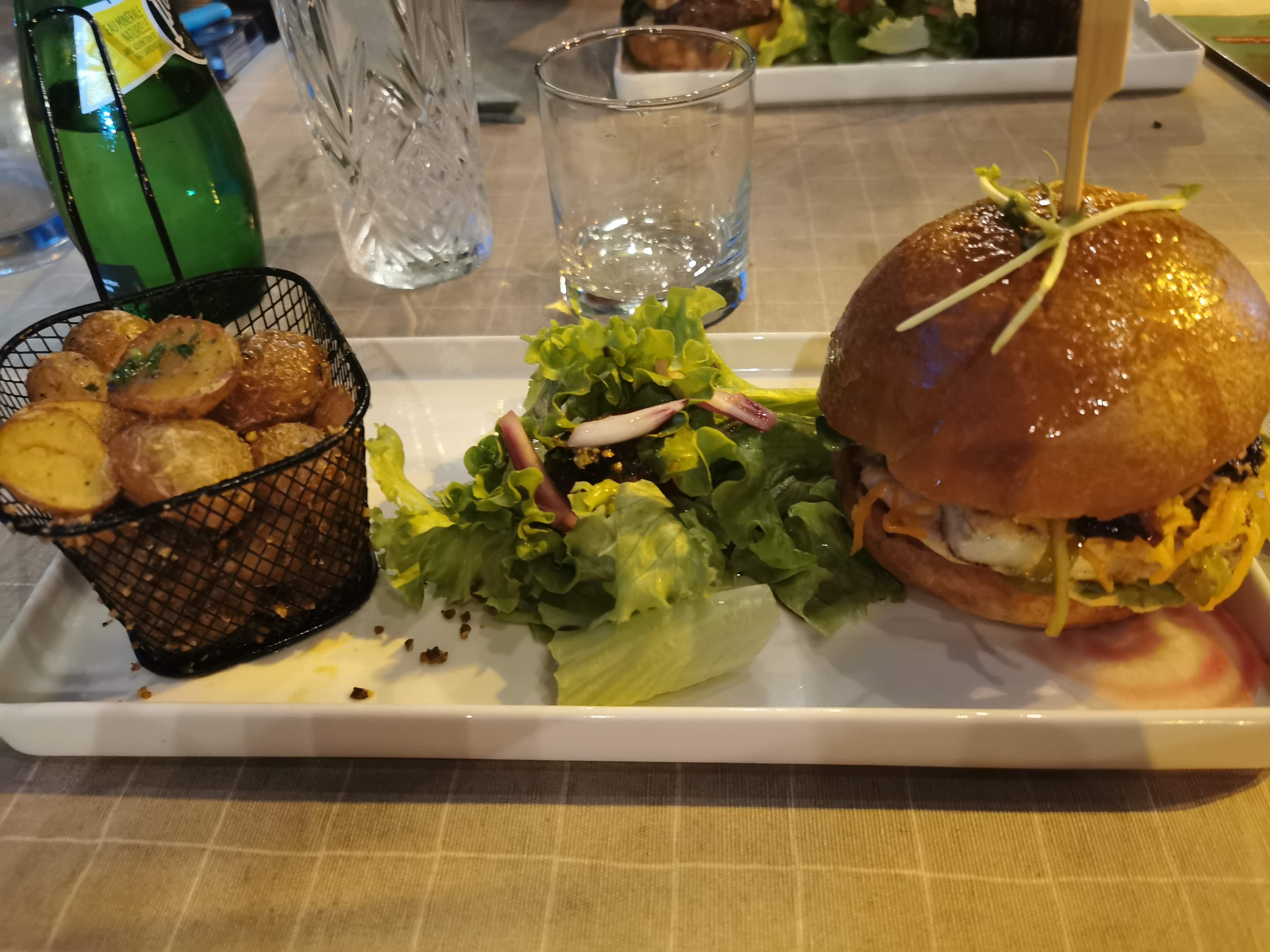 J'étais absolument ravi! Nous étions là avec un groupe de six collègues de travail. C'était sans exagération le meilleur burger que j'ai mangé de ma vie ! Tous les plats que nous avions à table étaient écrasants. Ma recommandation absolue !
