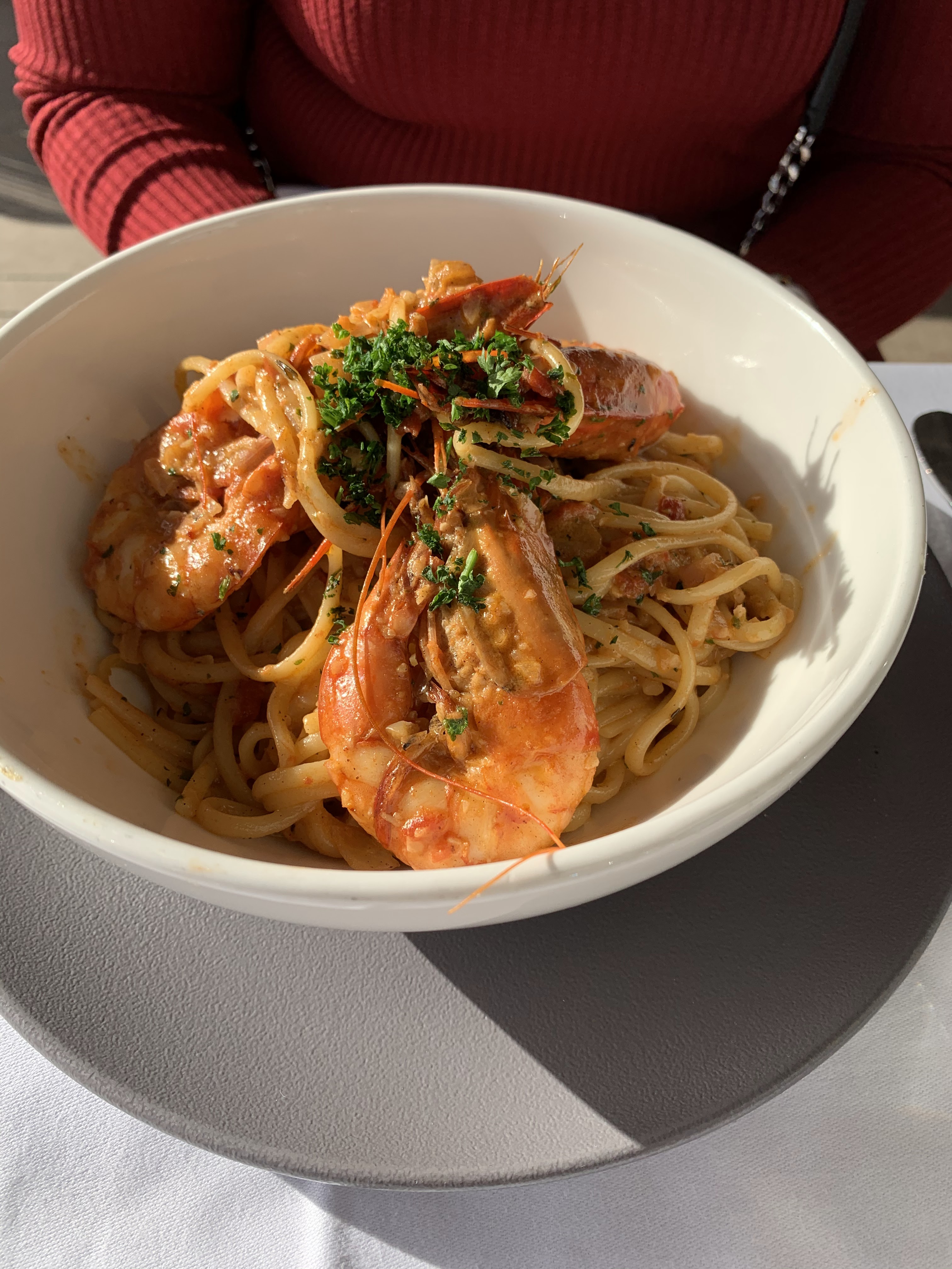Quand on voit tous ces terrasses l’une à côté de l’autre... pas si facile de faire un choix. Mais quelle belle découverte, ce restaurant vaut vraiment le détour. Très bon accueil ! Les plats étaient goûteux ,les pâtes étaient al dente et la sauce un régal !! Et les Saint-Jacques une cuisson parfaite ! Que du bonheur !!! Le seul petit point négatif pas beaucoup de choix pour le vin au verre.... vous pouvez vous arrêter les yeux fermés .