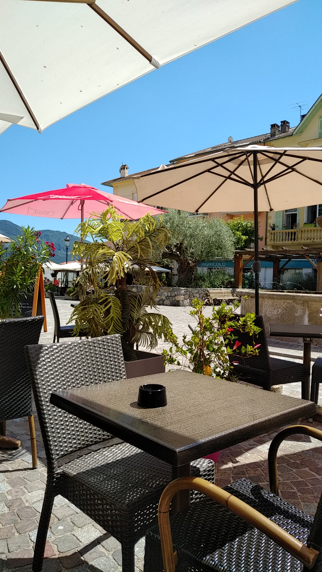 Très sympa, au soleil, sur une belle place...