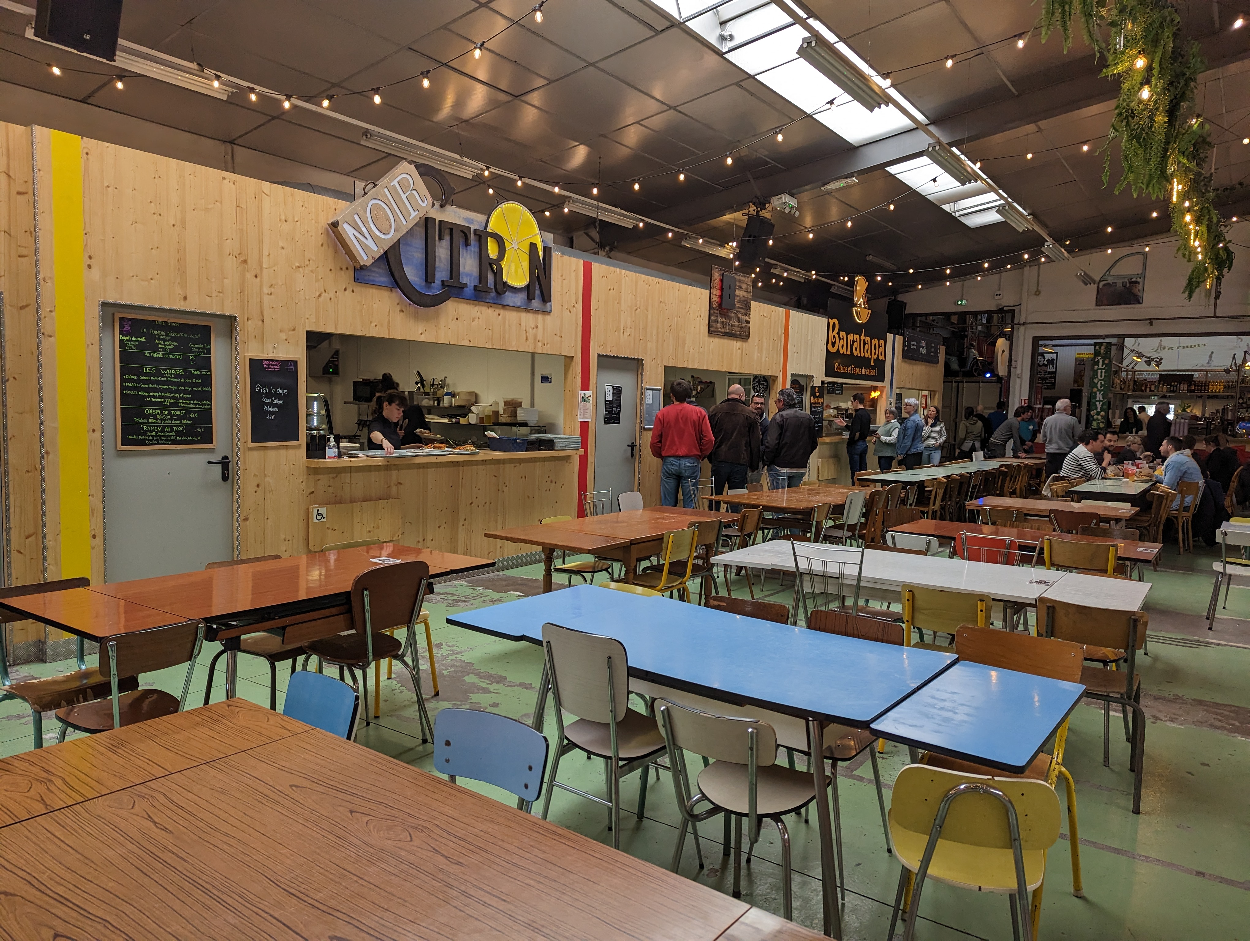 Super concept ! Salle de spectacle, bar et plusieurs food truck dans un hangar, ambiance au top