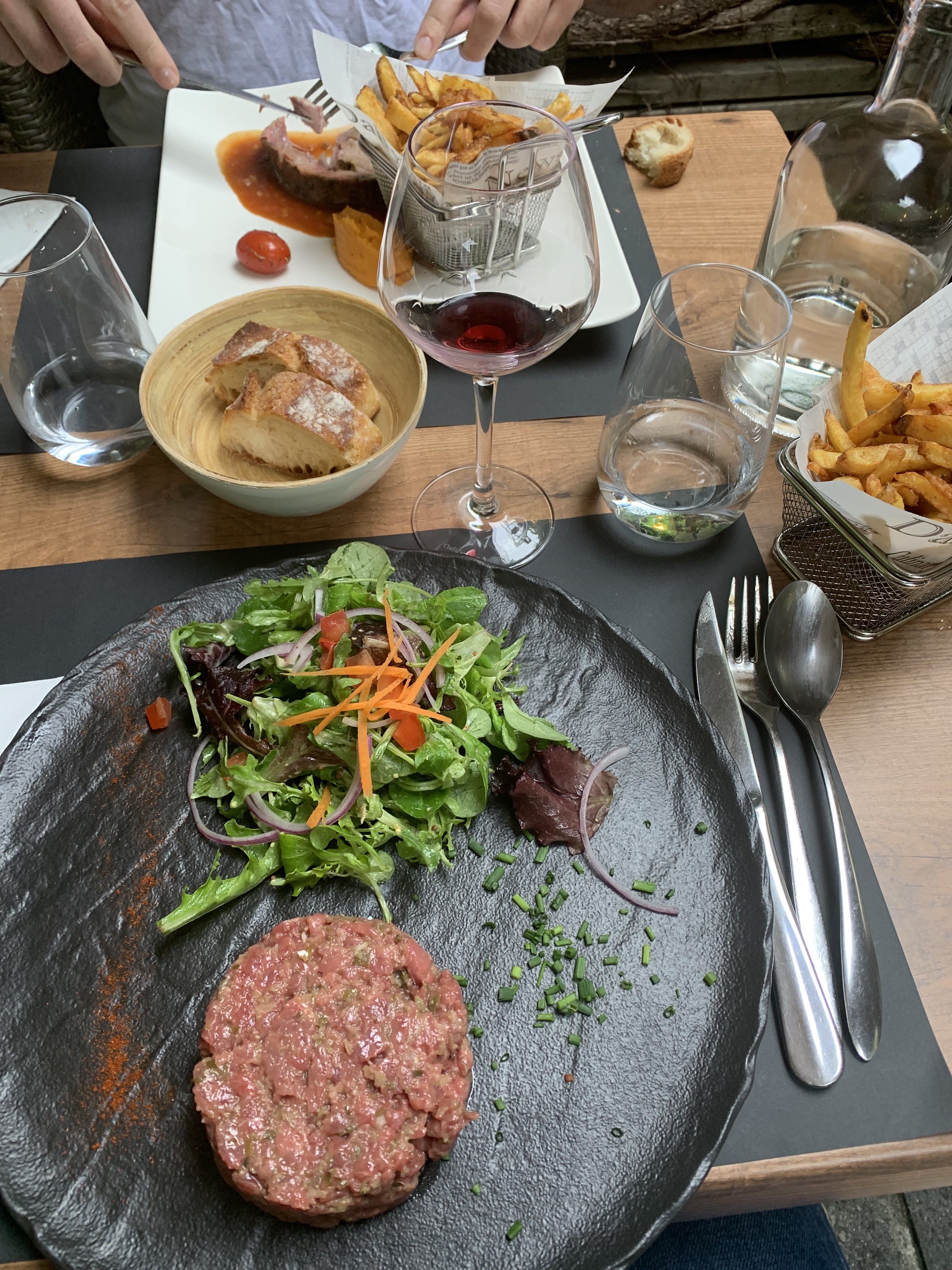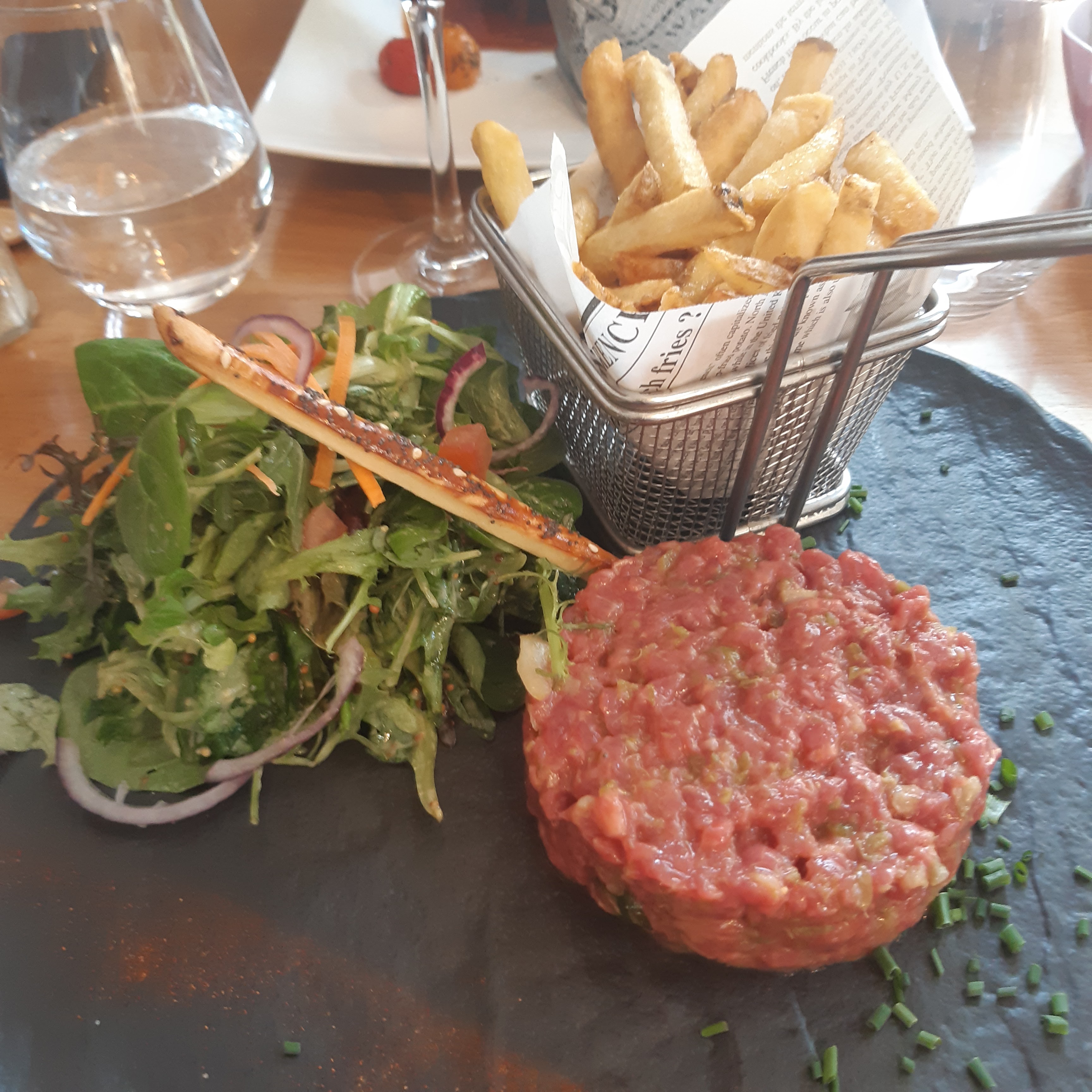 Un lieu à découvrir ! Tables à l'intérieur et en terrasse à l'extérieur, l'accueil est impeccable les conseils avisés les plats bien cuisinés et le service plutôt rapide. Les viandes sont très goûteuses et bien cuites. Les prix sont corrects, 2 menus proposés ( pour le diner) avec un choix de plats à la carte. Mon épouse est végétarienne, le Chef a fait une préparation spécialement pour elle. Je recommande !Vous pouvez vous y rendre en famille ou entre amis.