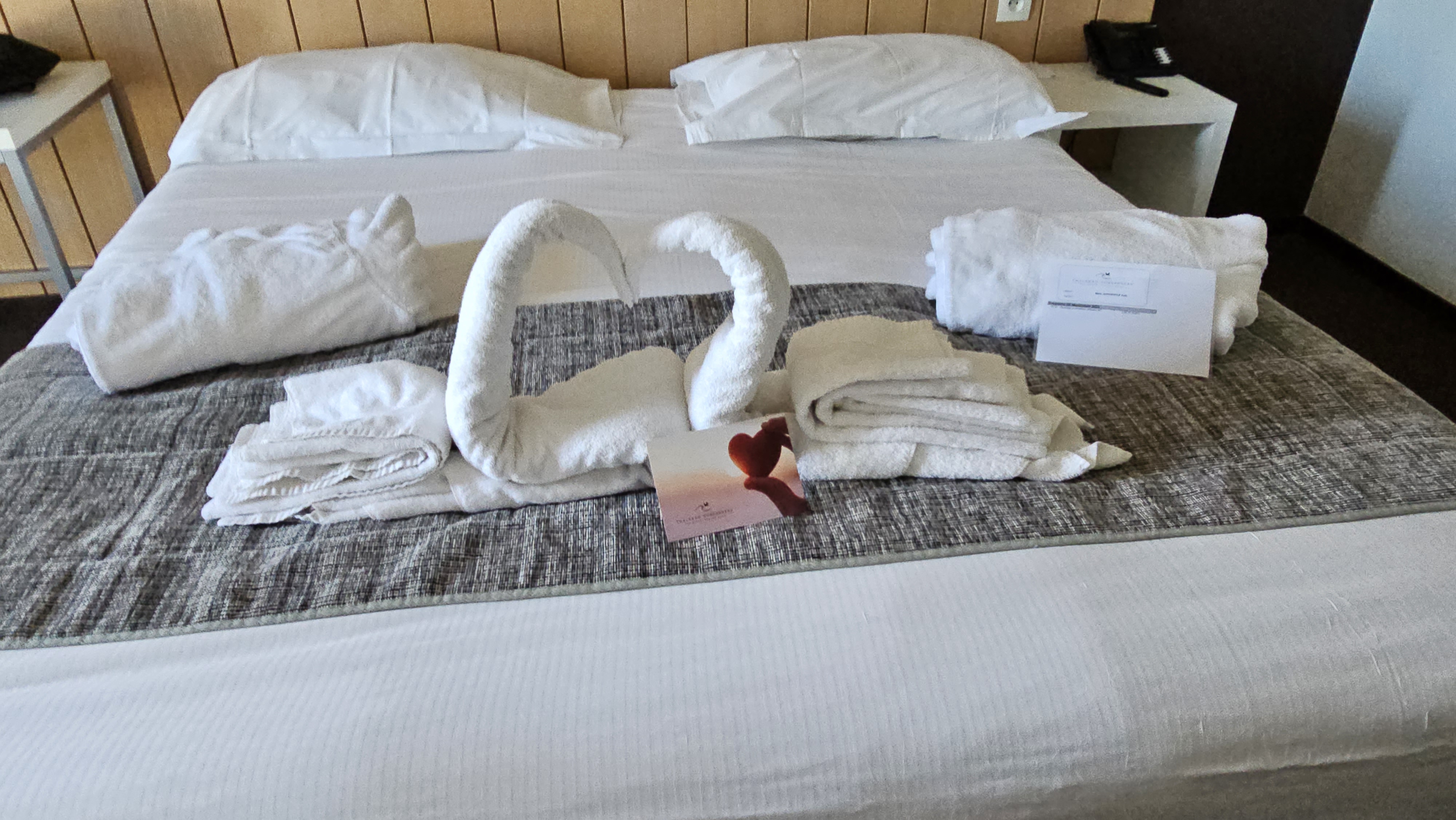 Nous avions réservé en appartement. Celui ci était impeccable! Le linge et les serviettes fournis. Le personnel très accueillant, agréable et souriant. Malheureusement, l'hotel étant complet, nous n'avons pas pu avoir accès à la Thalasso. Nous avions commandé un panier petit déjeuner, les viennoiseries et le pain, tout était frais. Par contre, rajouter des petits pots de confitures, beurre, miel... serait un plus. Tout comme un plateau de courtoisie dans les appartements.