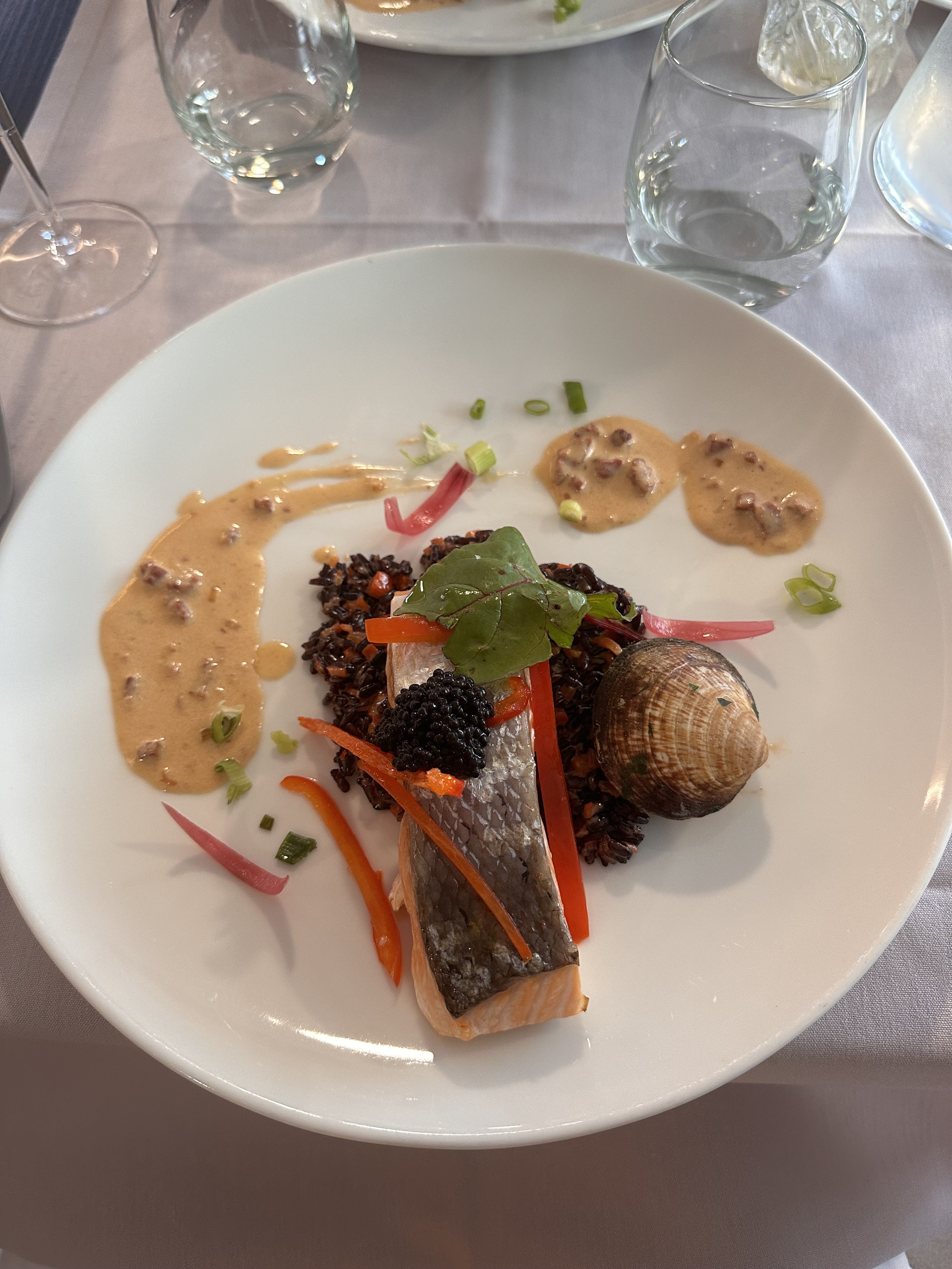 J'ai profité d'une carte cadeau comprenant un repas + accès au Spa + 2 soins. Concernant le spa et les soins rien à dire sinon bravo ! Belle organisation, belle equipe, bel endroit, bref une très belle détente ! Malheureusement, j ai commencé par le repas et là... Catastrophe ! 1h30 pour avoir mon plat en suppliant ! Et en ayant prévenu que mon premier soin débutait à 14h... Le poisson était correct mais pas exceptionnel... Et du coup pas le temps de prendre mon dessert ! On nous a offert la bouteille d eau ! Bref service zéro pointé ! Heureusement je garde le côté super positif du spa !