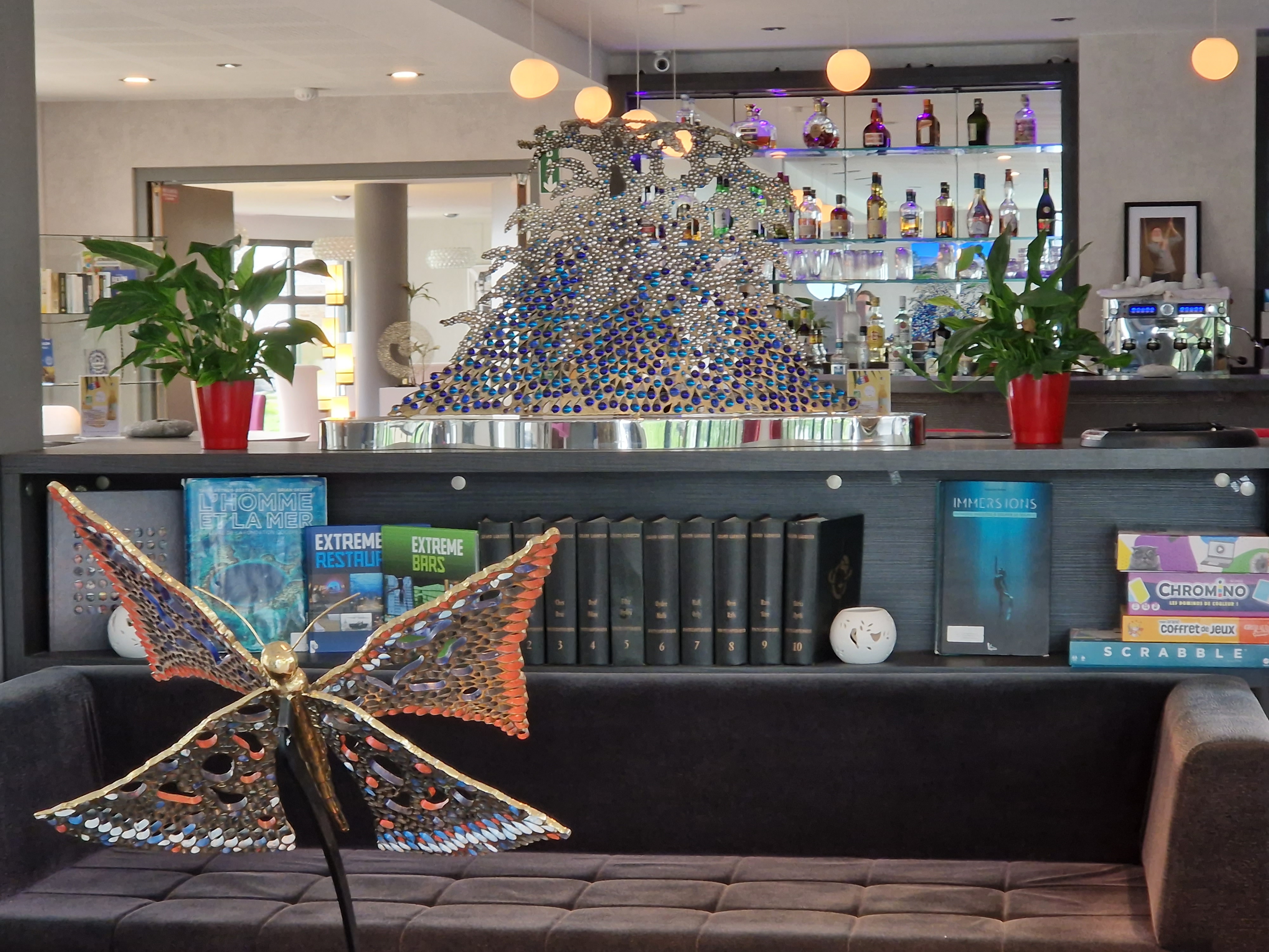 Merci au personnel de l'hôtel pour leur accueil très chaleureux (particulièrement vis-à-vis de notre chien qui a été accepté dans la chambre ainsi qu'au restaurant, c'était vraiment chouette 😊) Le spa marin est vraiment super: très belle vue sur la mer grâce aux grandes baies vitrées, eau saline, jets massants et bassins vraiment spacieux même en cas d'affluence, on est quand même dans l'intimité. Hammam très détente avec des LEDs multicolores. Les peignoirs fournis sont des petits cocons très douillets. Les chambres sont spacieuses; nous avons eu une vue mer magnifique avec une terrasse exposée Ouest. Les toilettes sont séparées de la salle de bain, c'est un plus. Petit bémol sur la literie dans laquelle nous nous sommes réveillés avec des douleurs (nous avions sans doute un matelas un peu vieux ?) Le restaurant fait vraiment passer un très bon moment: la décoration (ainsi que celle de l'hôtel en général) est jolie, la cuisine y est parfaite: recettes originales, saveurs adroitement mêlées, cuissons maîtrisées, service impeccable : nous sommes ravis. Bémol sur les fruits un peu acides au repas et au petit déjeuner. Le personnel se montre accueillant, chaleureux et disponible (nous avons eu une demande spécifique avec notre chien et ils ont eu à cœur de traiter notre demande). Placement idéal à 2 pas de la plage et grand parking gratuit à disposition. Merci bcp pour ce moment ressourçant ! À bientôt