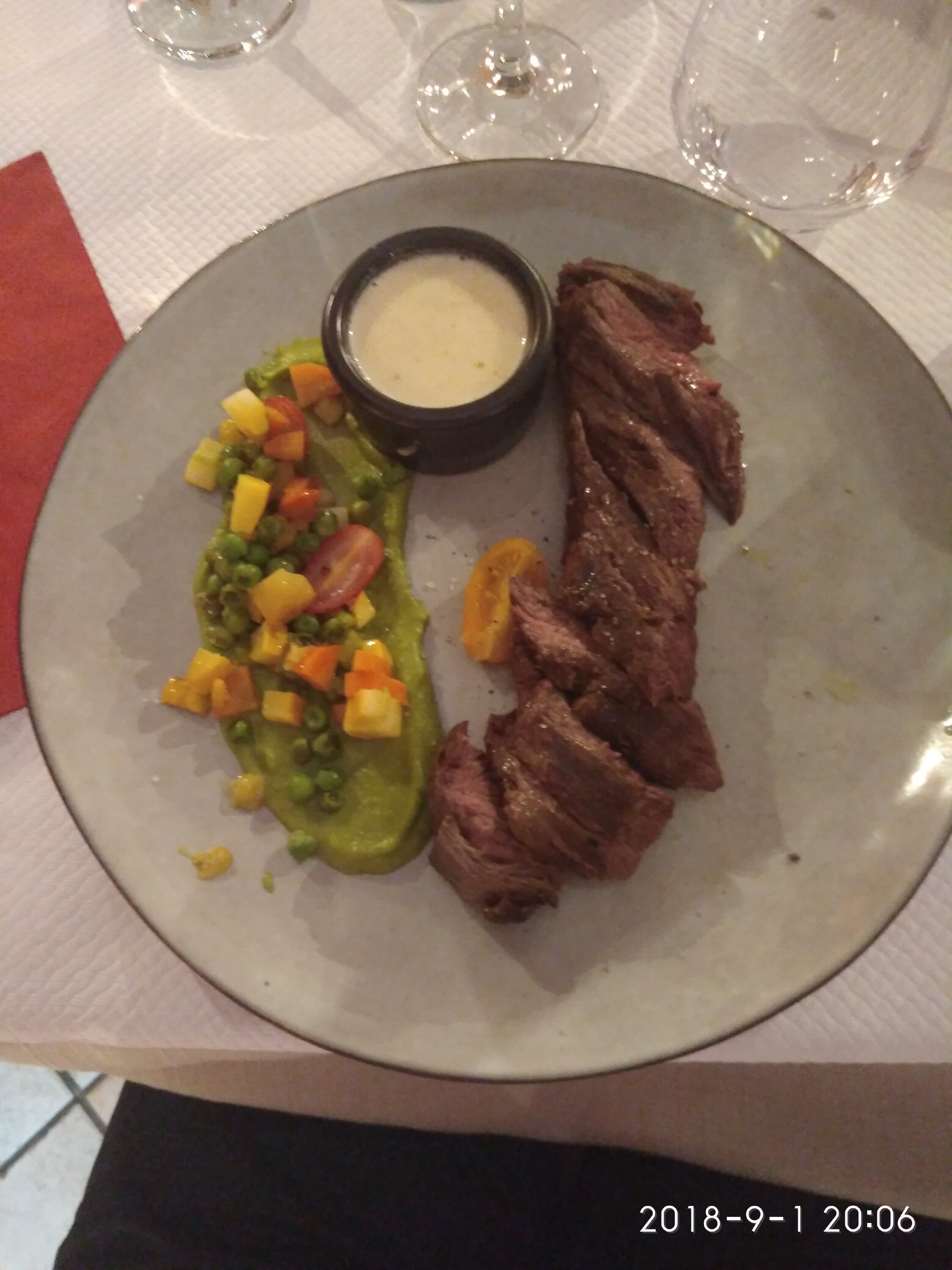 Soirée entre copines. Très bon accueil, équipe charmante et à l'écoute. Repas délicieux, viande excellente (du veau pour moi) et délicieuse sauce. Nous reviendrons avec plaisir🎇.