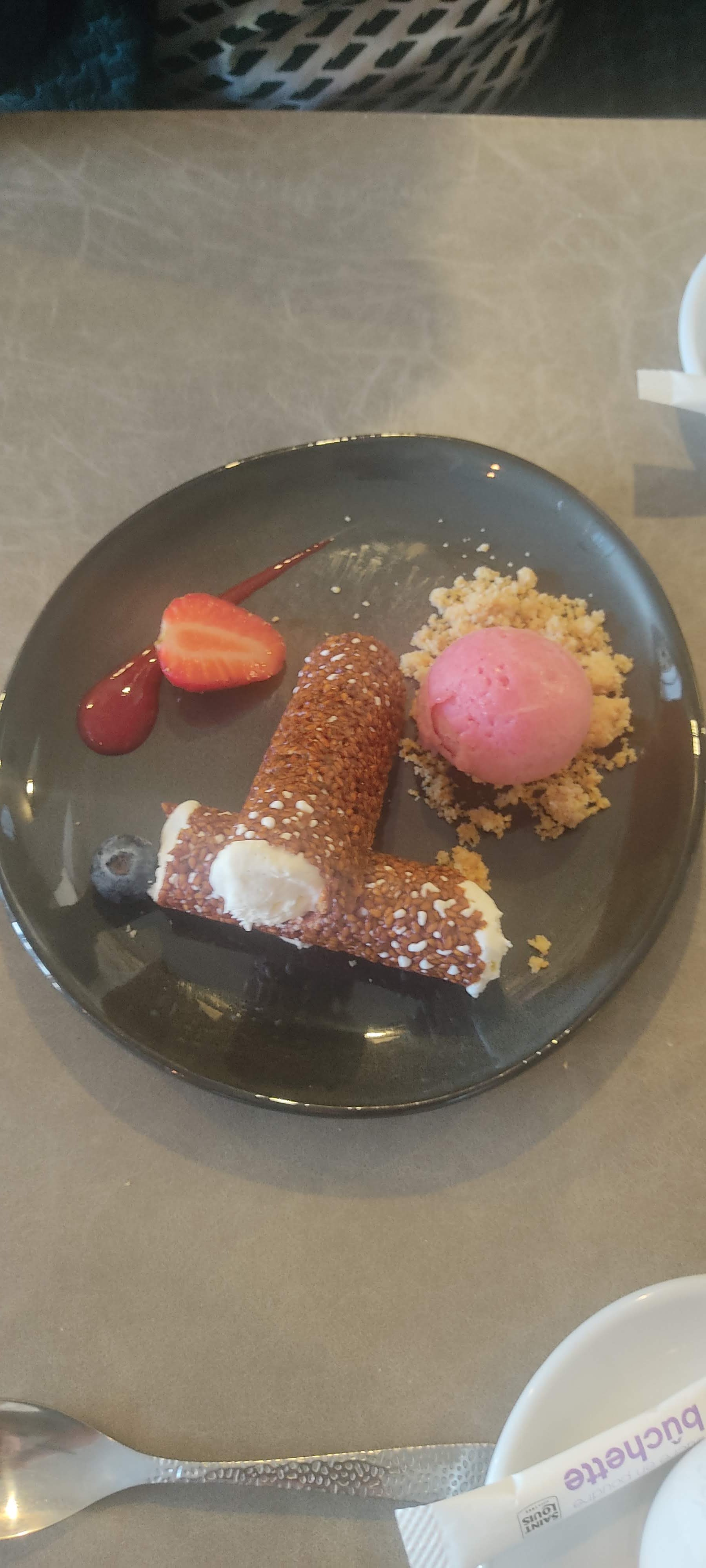 Un vrai delice, nous nous sommes regalé de l'entrée au dessert, aucune faute :) Le cuisto a vraiment géré, assiettes très bien présentées. De plus le personnel est très agréable Nous reviendrons avec plaisir et au plus vite