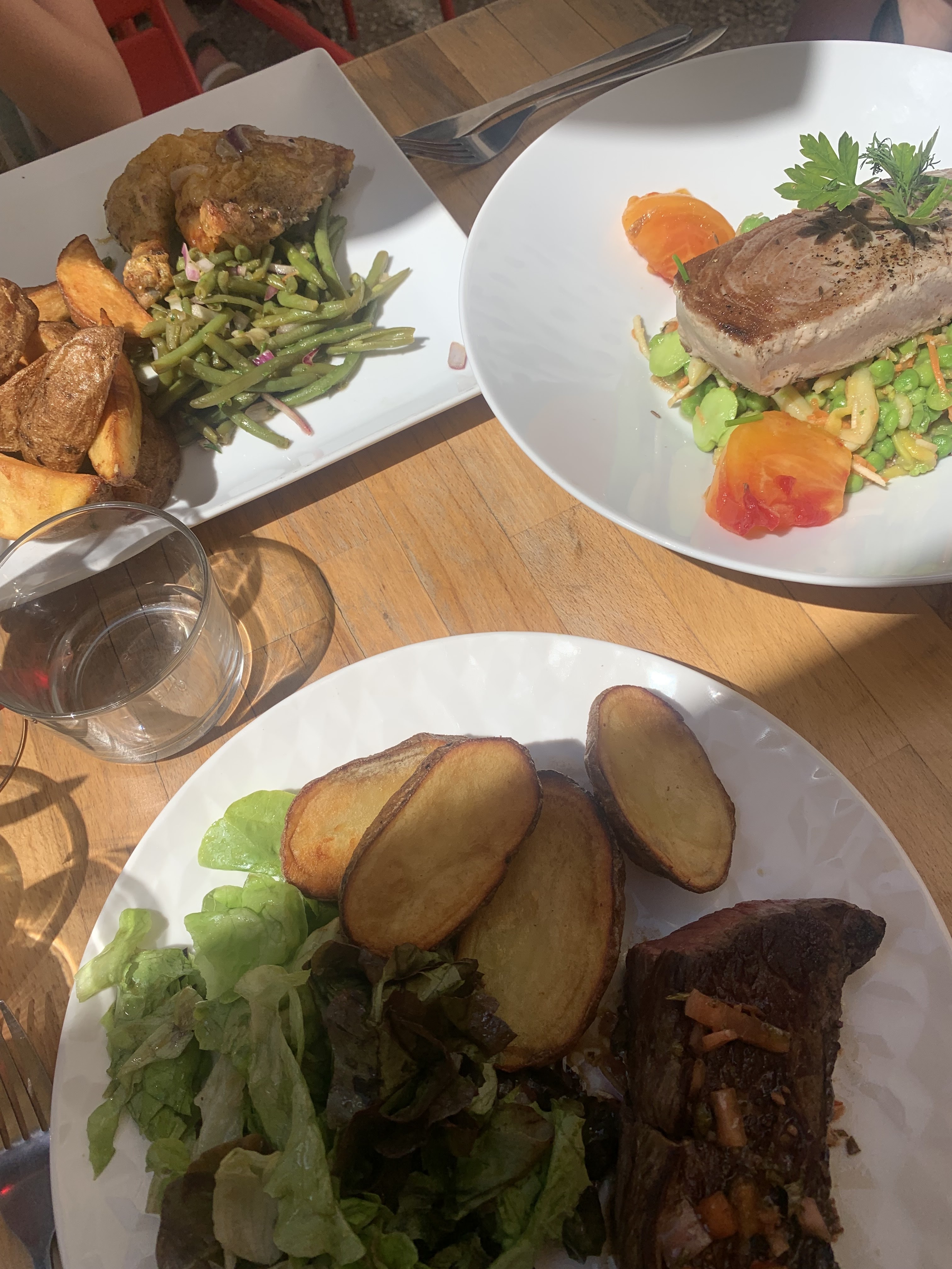Un plat du jour et le steak de thon aujourd'hui Un delice On recommande évidemment cet établissement , de la très très bonne cuisine Et on soulève les chaises 😁