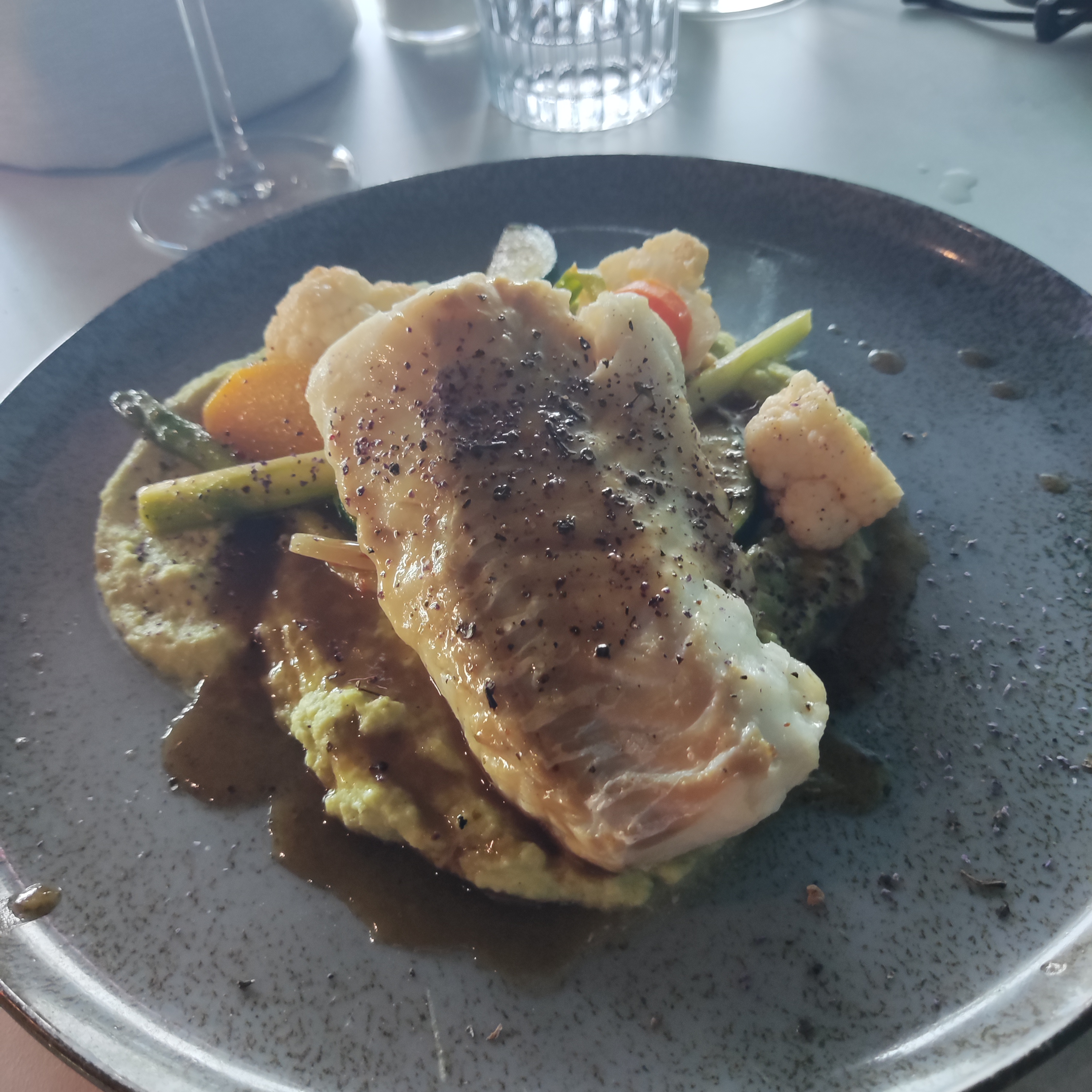 Agréablement surpris par cette nouvelle adresse. Nous avions peur des plats trop légers, trop instagrammable mais nous avons eu de très beaux plats de poisson copieux, cuits à la perfection et assaisonnés comme il faut. Vraiment parfait. Le service est peut être encore un peu en rodage mais c est fait avec tellement de bonne humeur que tout passé a merveille. Nous n avons pas vu le temps passé. Et la vue est plutôt sympa.