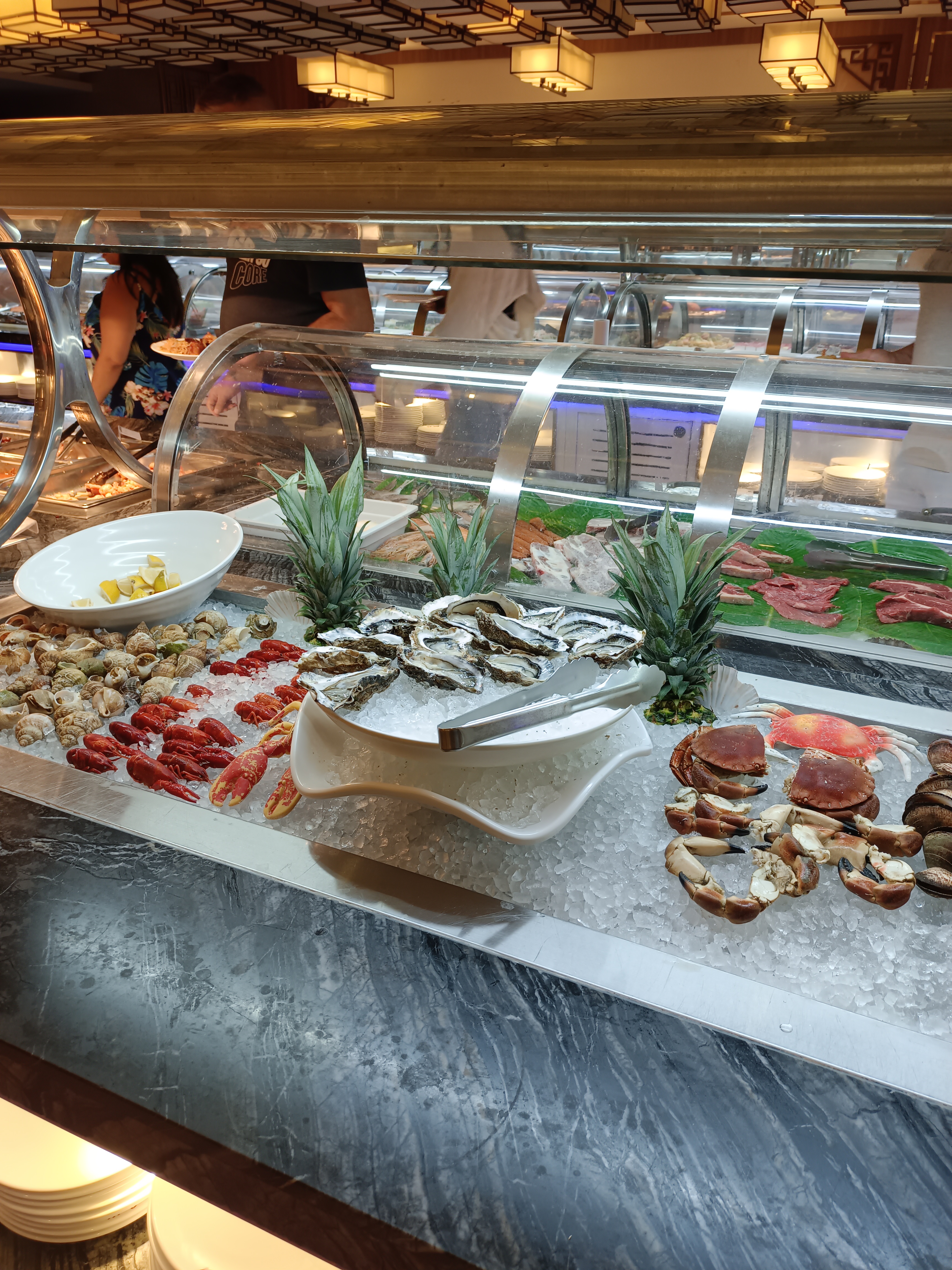 Serveurs peu compétent. Beaucoup trop de monde pour rien. Le sol est collant, je donne mon assiette pour le wok pour au final ne rien avoir en retour car le cuisinier la perdue. Produit sans saveur et voir trop salé. Le système de couvercle pour le buffet est chiant, les lumières chauffante sont trop proche et met en danger les gens car on peut se brûler facilement dessus. Des assiettes sont sales. Bref je ne le conseille pas du tout a ce prix la, aller voir ailleurs.