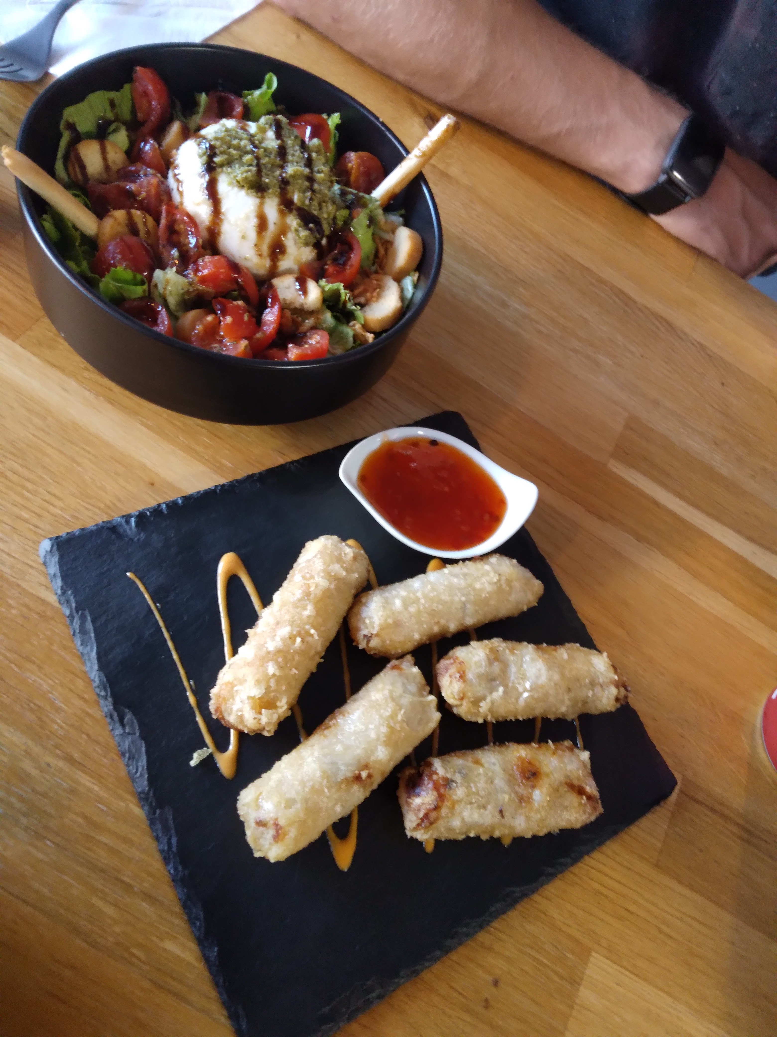 Beau et bon restaurant avec un personnel très gentil mais quelques points négatifs comme le fait de ne pas prendre de réservation et le manque d’éléments dans les plats ( manque de sel et d’épices et salade César sans sauce césar ni parmesan c’est dommage )