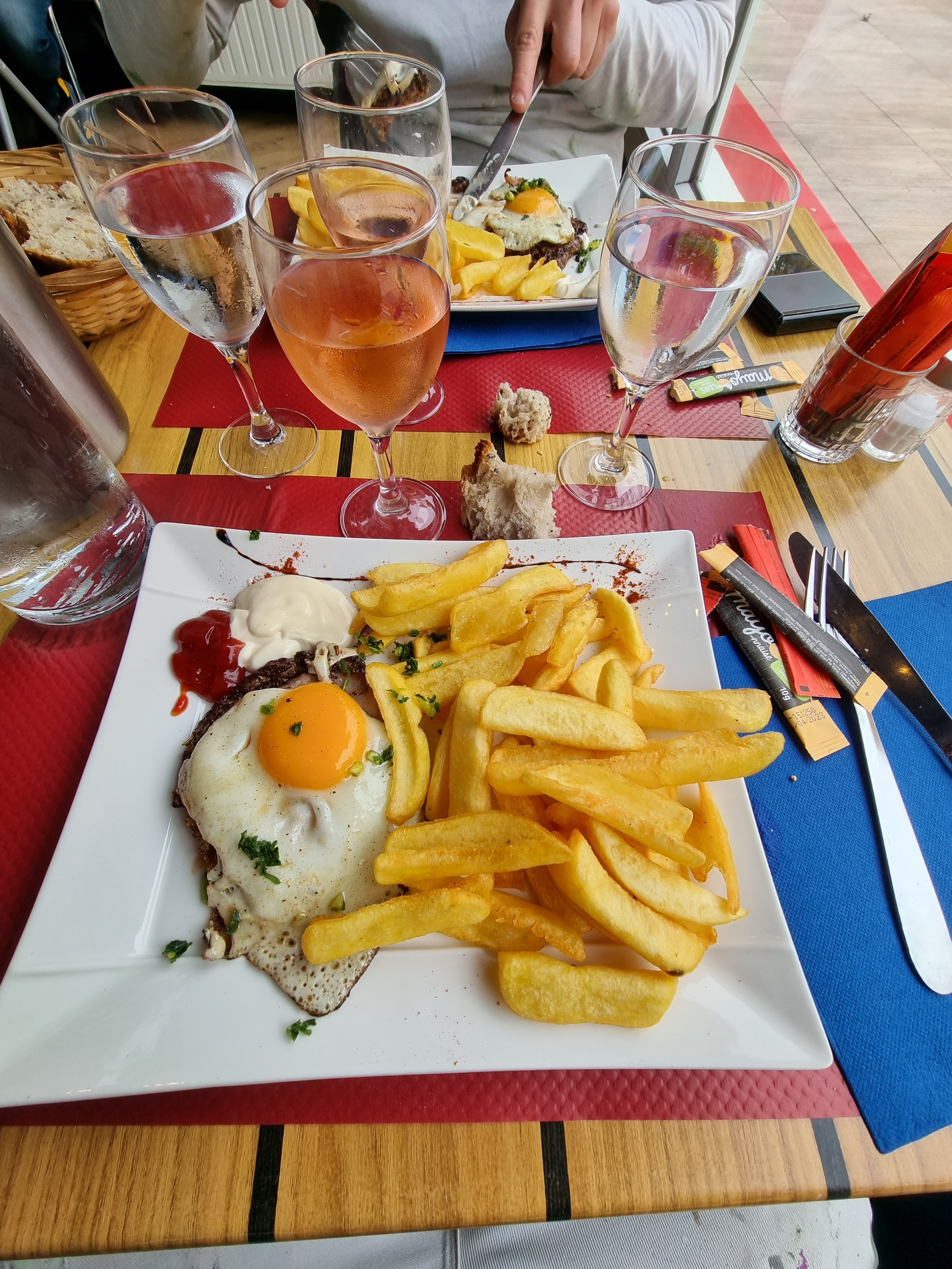 Accueil sympathique, terrasse en bord de route donc bruyante même un dimanche. Repas pas top, poisson trop cuit et burger sans goût et pain burger pas terrible.