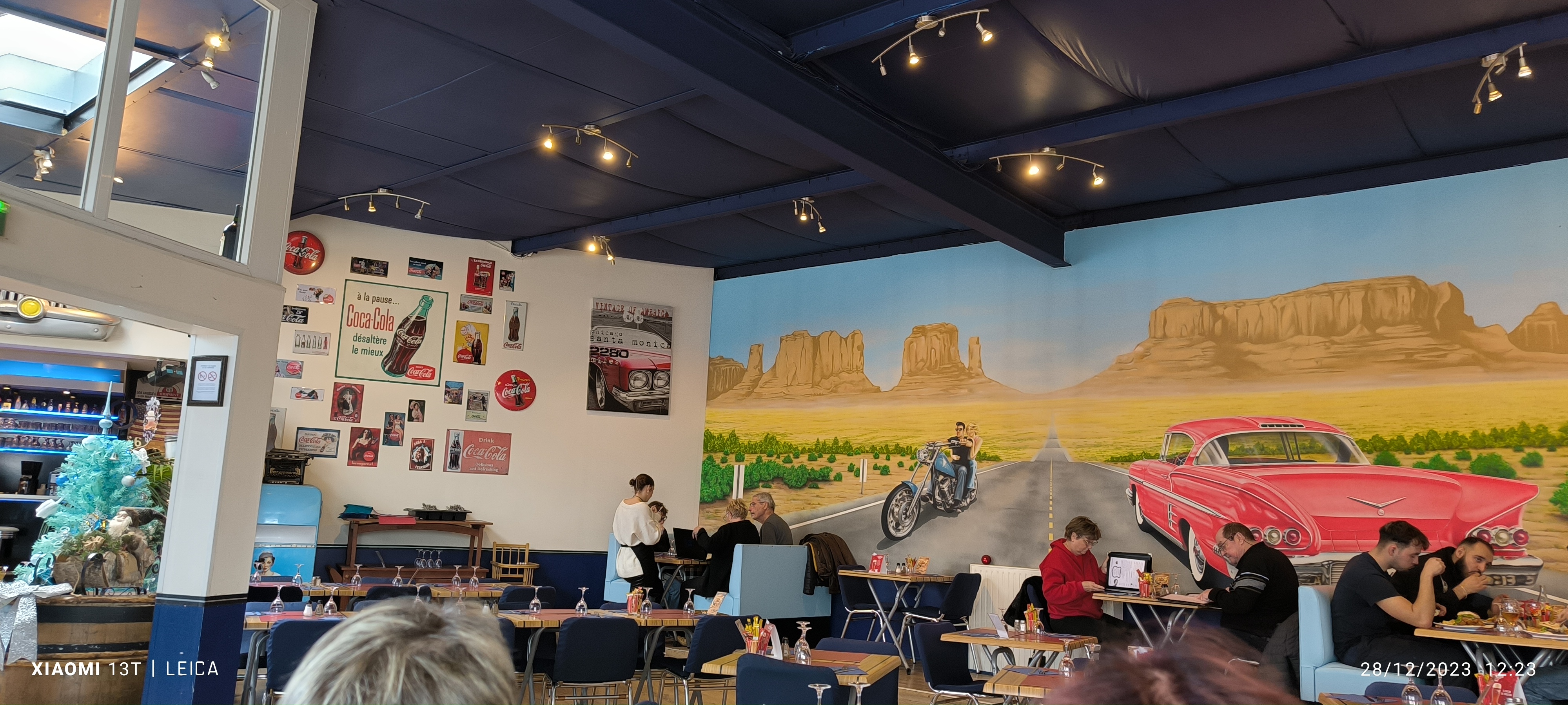 Très beau restaurant, très bons plats copieux et de qualité. Belle terrasse immense pour l'été. Personnels très professionnels et tres aimables. Prix très corrects, ne changer rien. Je recommande. On y retourne ce week-end pour faire découvrir à nos amis l'ambiance 66 car ils sont FAN de l'Amérique. Bravo à toute l'équipe. Joss le Nancéien.