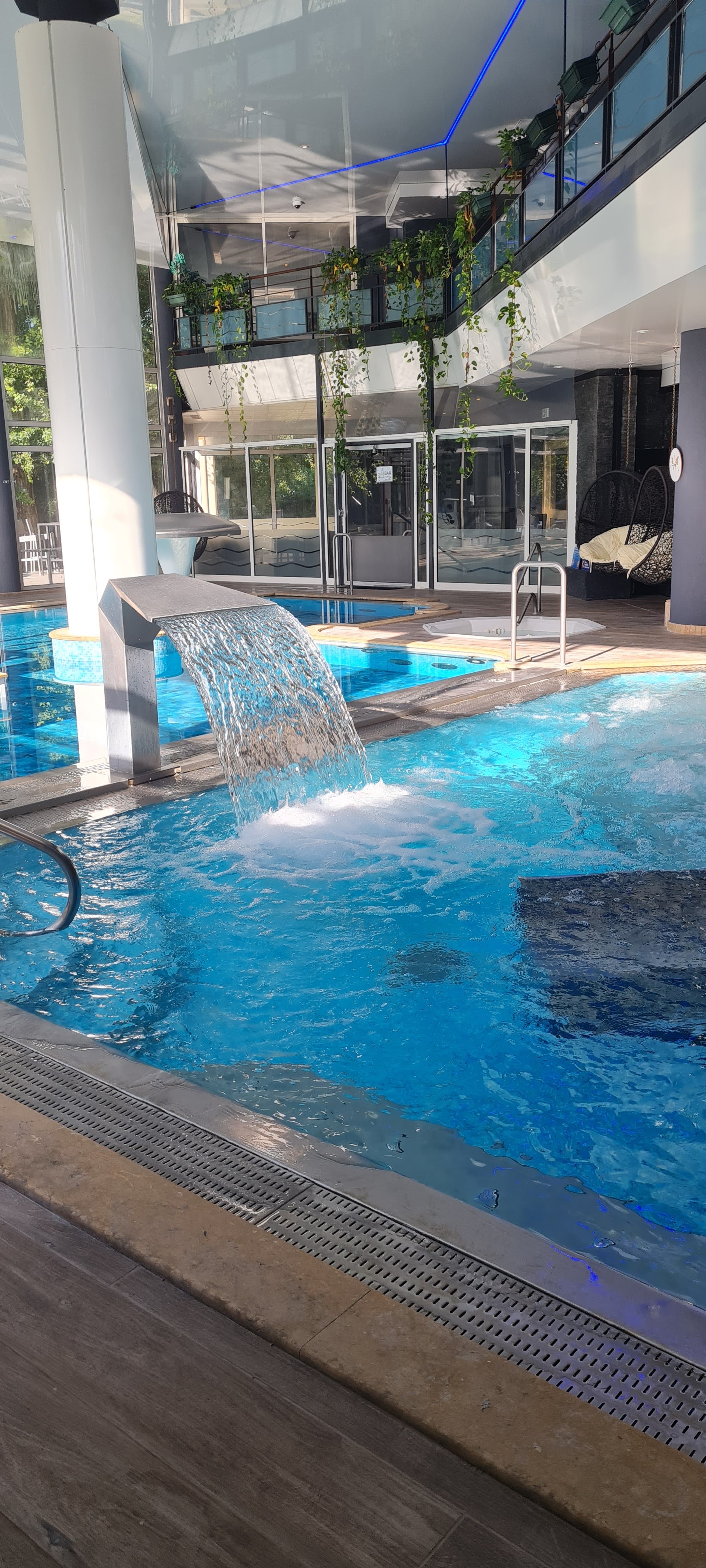 Spa trop petit en rapport avec le nombre de personnes présentes, grand bassin non accessible, réservé aux cours. Brunch avec des produits de qualité moyenne