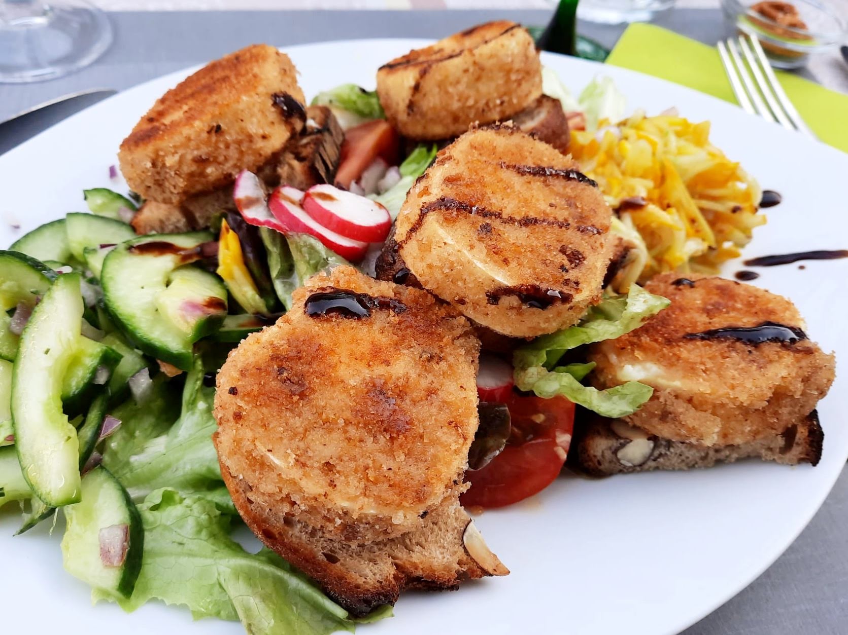 Nourriture délicieuse, tout fait maison, rien sorti d'un sac. Les frites sont également fraîches et faites maison. L'accueil de la cuisine fut extraordinaire, une soupe froide à base de feuilles de radis. Il y avait un délicieux ragoût avec des spaetzle faits maison, une salade au fromage de chèvre et des escargots. Tout est de très bonne qualité avec un excellent service à des prix très corrects. Recommandation absolue !