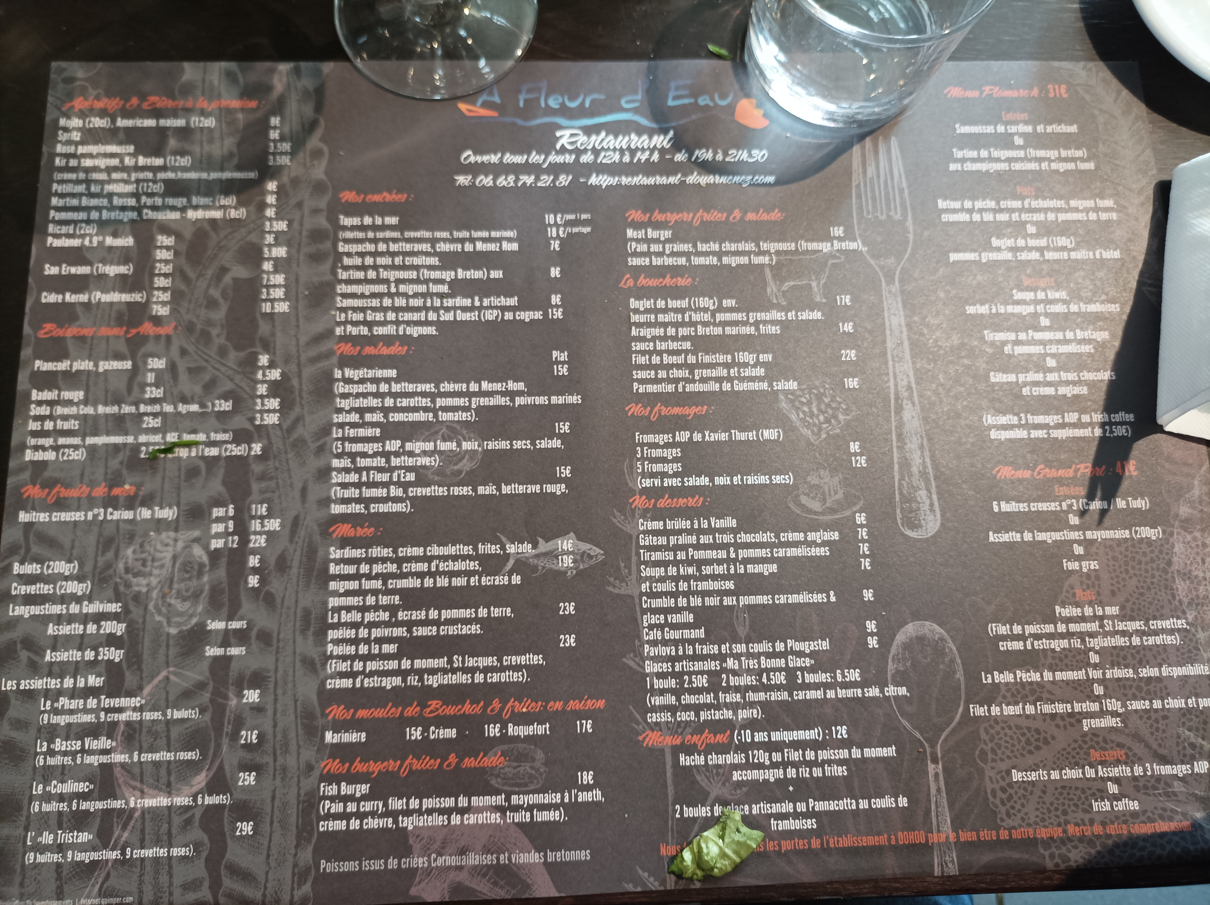 C'est tout a fait par hasard que nous avons choisi , la semaine dernière A Fleur d'Eau. Nous n'avons eu aucun regret car c'est une excellente adresse en face du port. La vue est magnifique, le service est impeccable. Tous les plats étaient divins, le poisson parfaitement cuit, et la tartine fromage breton, un délice. Nous recommandons vivement ce restaurant et en plus les prix sont très très corrects.