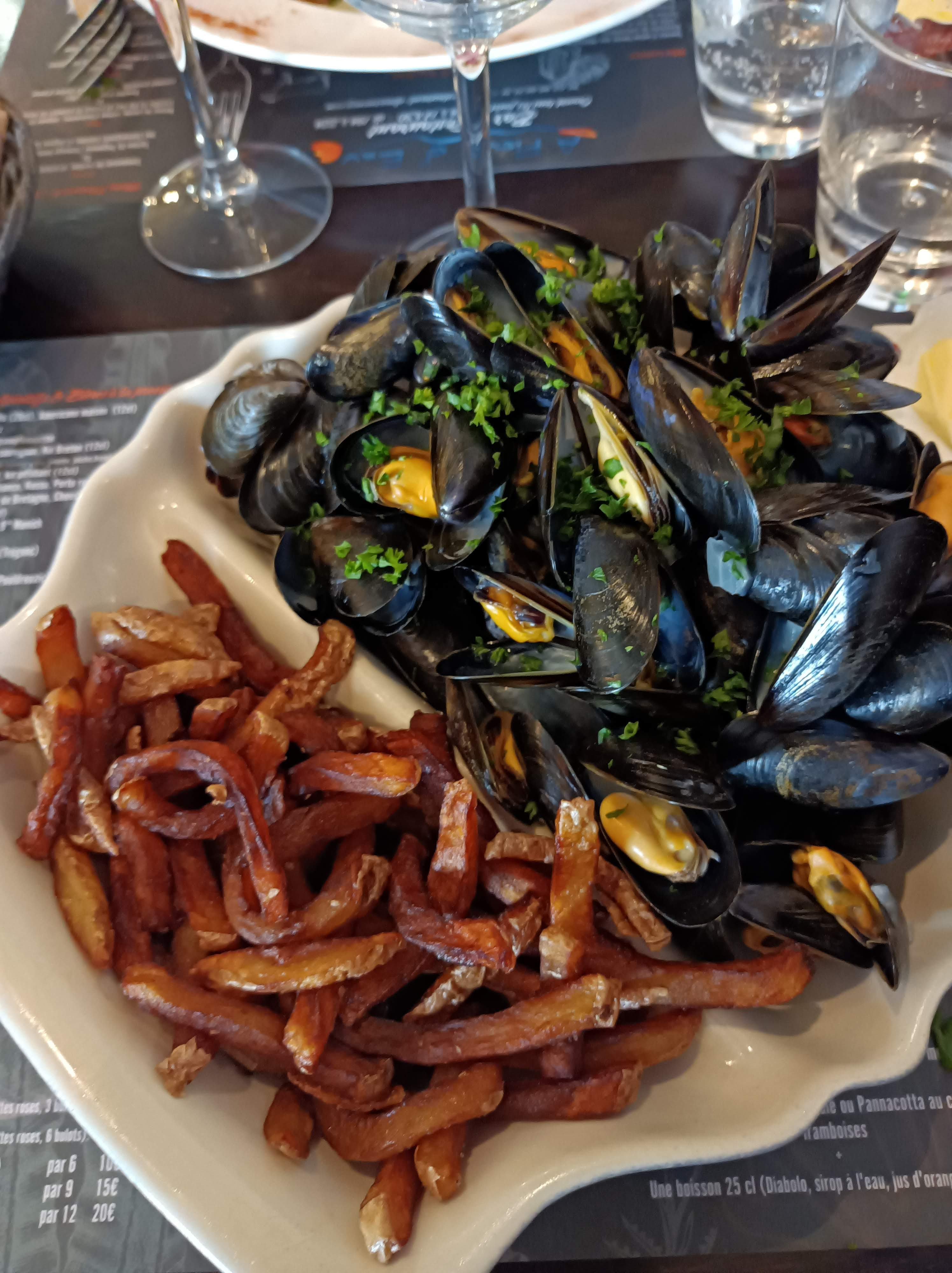 Moules-frites excellentes sur le Rosmeur, accueil charmant et prix tout doux. Un rêve pour les vacances.