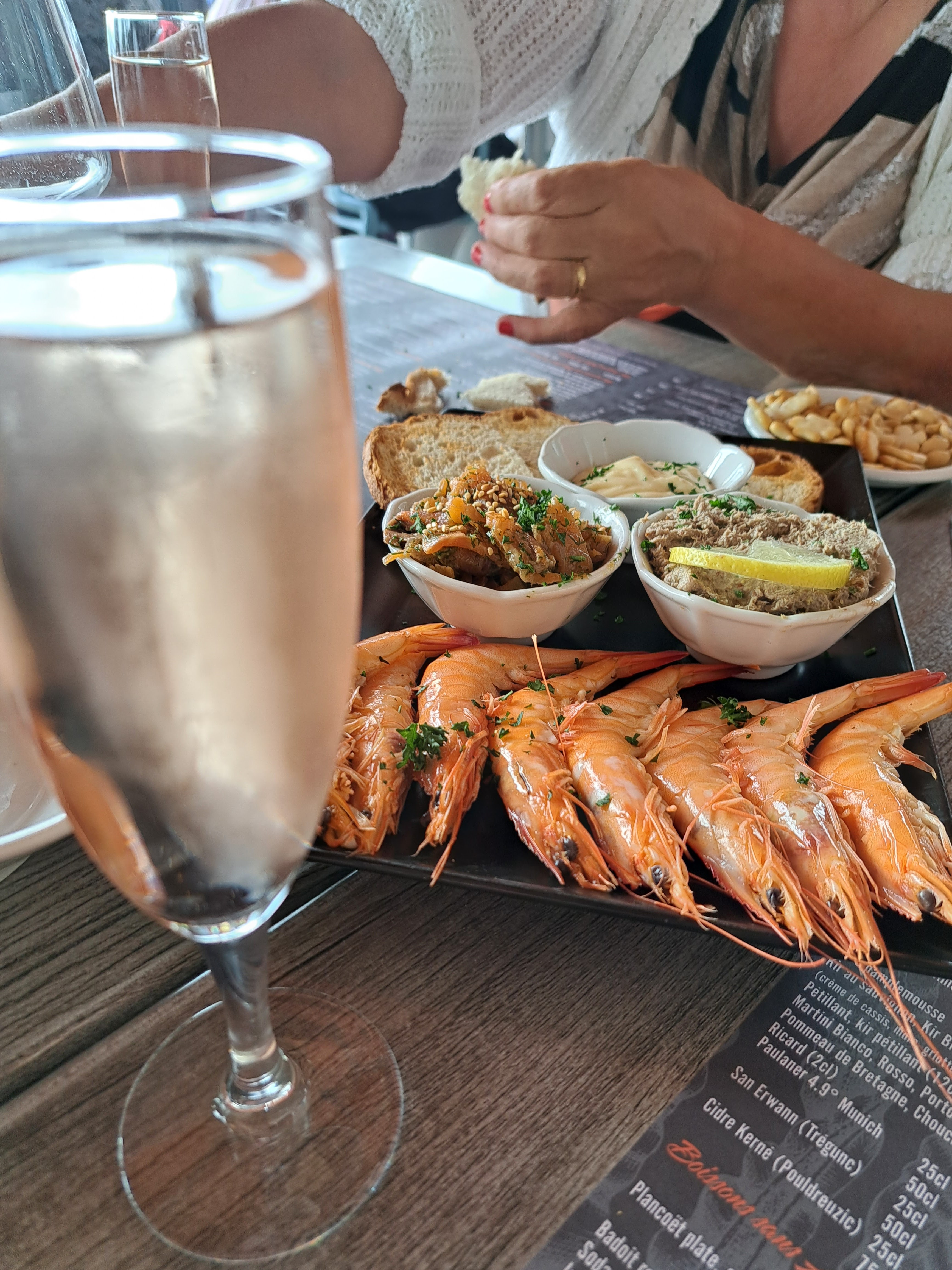 Repas délicieux, assiettes à partager (crevettes, tartare, rillettes sardines maison), suivi de la pêche du jour. Là serveuse pourrait juste être plus gracieuse, d'où les 3 etoiles