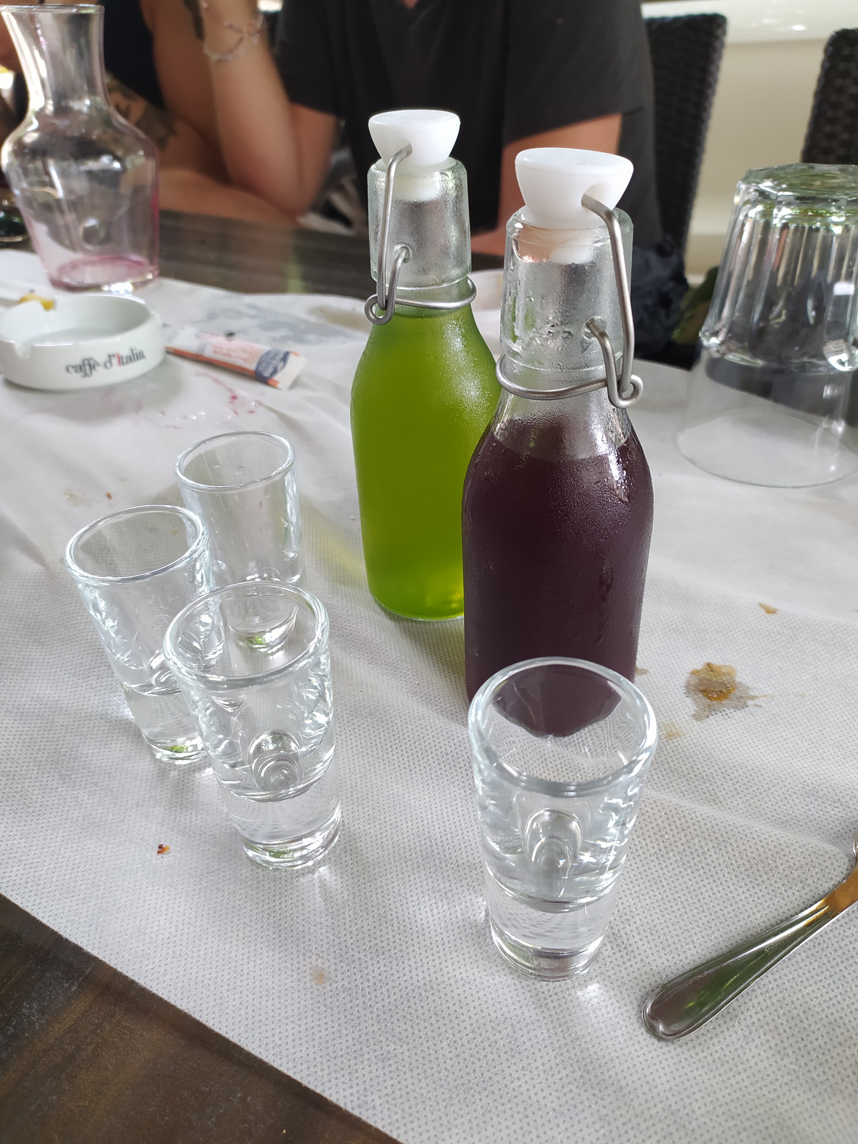 Au centre du village de Vescovato sous le regard de l'aigle Royal en terrasse ombragée superbe découverte. Le patron accueillant nous décrit puis réalisé les pâtes à la meule avec de la panceta locale. Excellent.