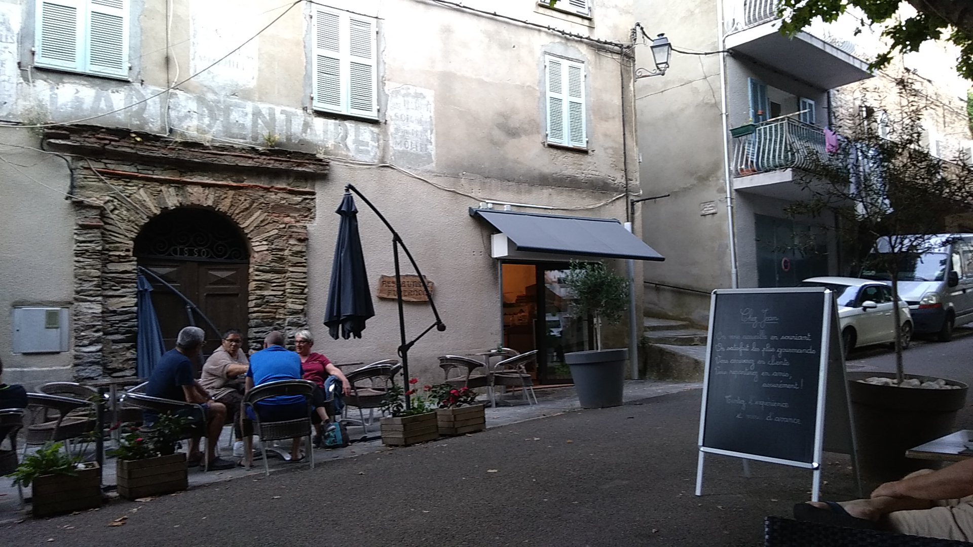 Au centre du village de Vescovato. Ambiance familiale. Cuisine délicieuse et service au top. Et en plus fraicheur bienvenue à la tombée de la nuit. Nous y reviendrons