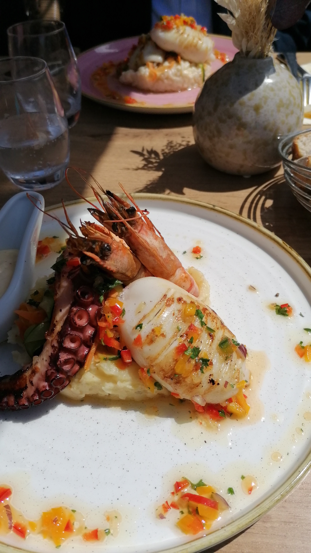 Courte carte avec de bons produits. Lasagnes très bonnes, la salade de poulpe 🐙 bien mais manque d'assaisonnement. Tarif correct bel endroit