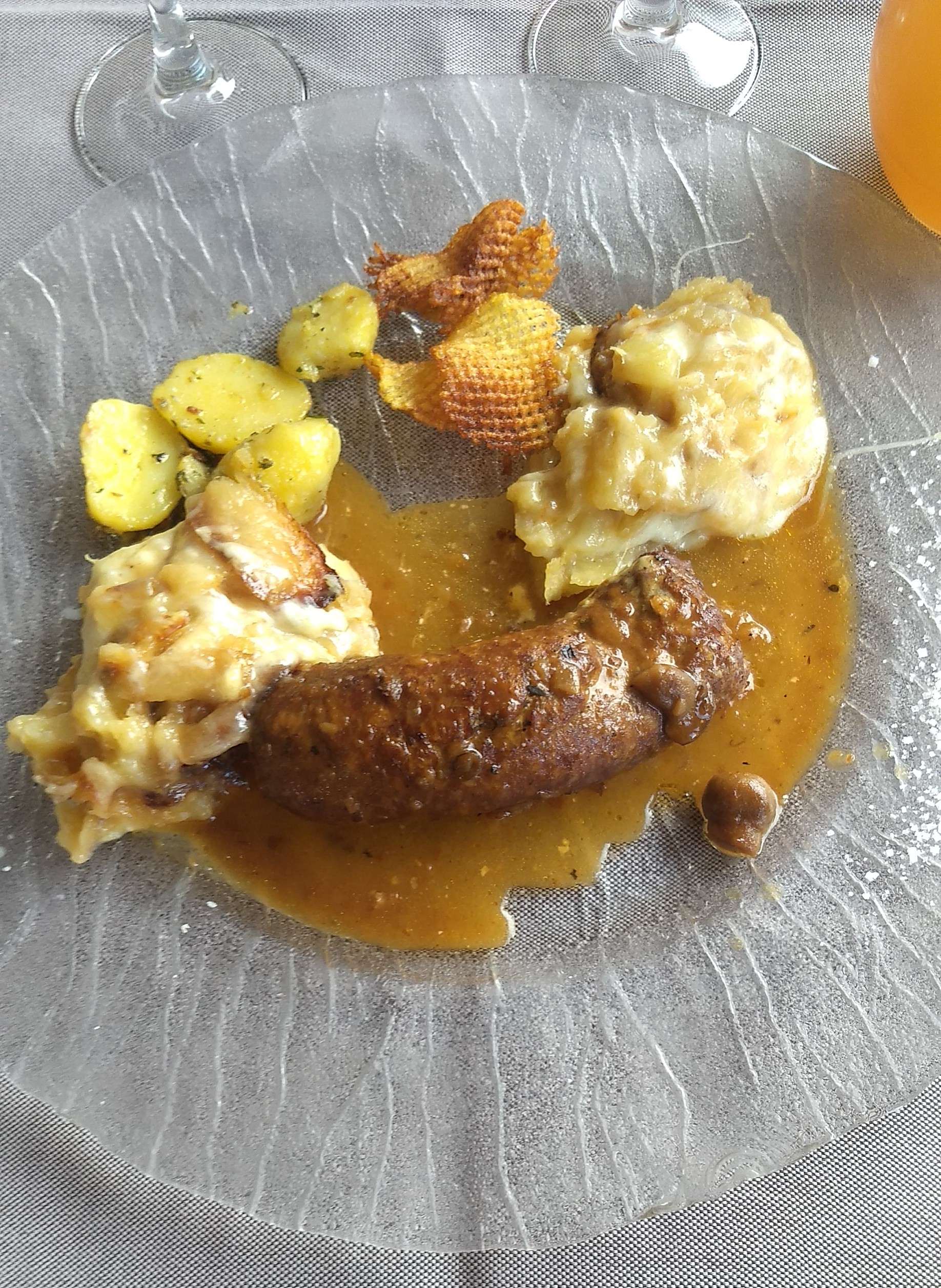 Très déçus par le restaurant : le plat (saucisse, ratatouille, pommes de terre, truffade) semblait rechauffé et de la veille, mal présenté, la ratatouille fade baignait dans son jus, saucisse sèche et insipide. Service négligé. Nous sommes partis sans prendre le dessert. A fuir.