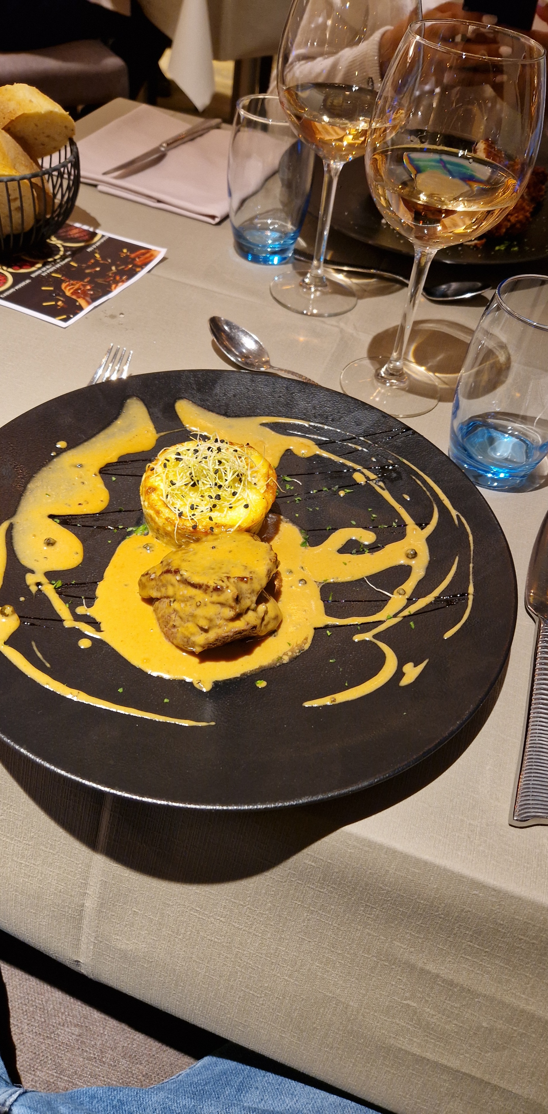 Le repas était bon , et plutôt copieux. J ai pris le menu. Amuse bouche par contre pas terrible et composition pas annoncé. ( Peu être gênant pour les allergies). Pour le service , une personne plus impliquée que l autre , du coup mitigé. Le repas entre oeuf mollet très bon , filet mignon très bon aussi et bien accompagné en goût et quantité, crème brulée, légèrement trop sucré mais surtout froide et non tiède ( préparation à l avance ) dommage car sinon ++. Au final j en garde un bon souvenir. Et la vue 🥰
